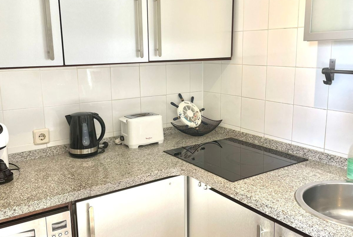 The complex resembles a resort, with high-quality facilities including a fully equipped gym, several shops on-site, and a 24-hour reception. Constant security and attention ensure peace of mind and comfort. You'll also have direct access to the beach and can enjoy spectacular swimming pools with water slides, perfect for fun-filled family time.