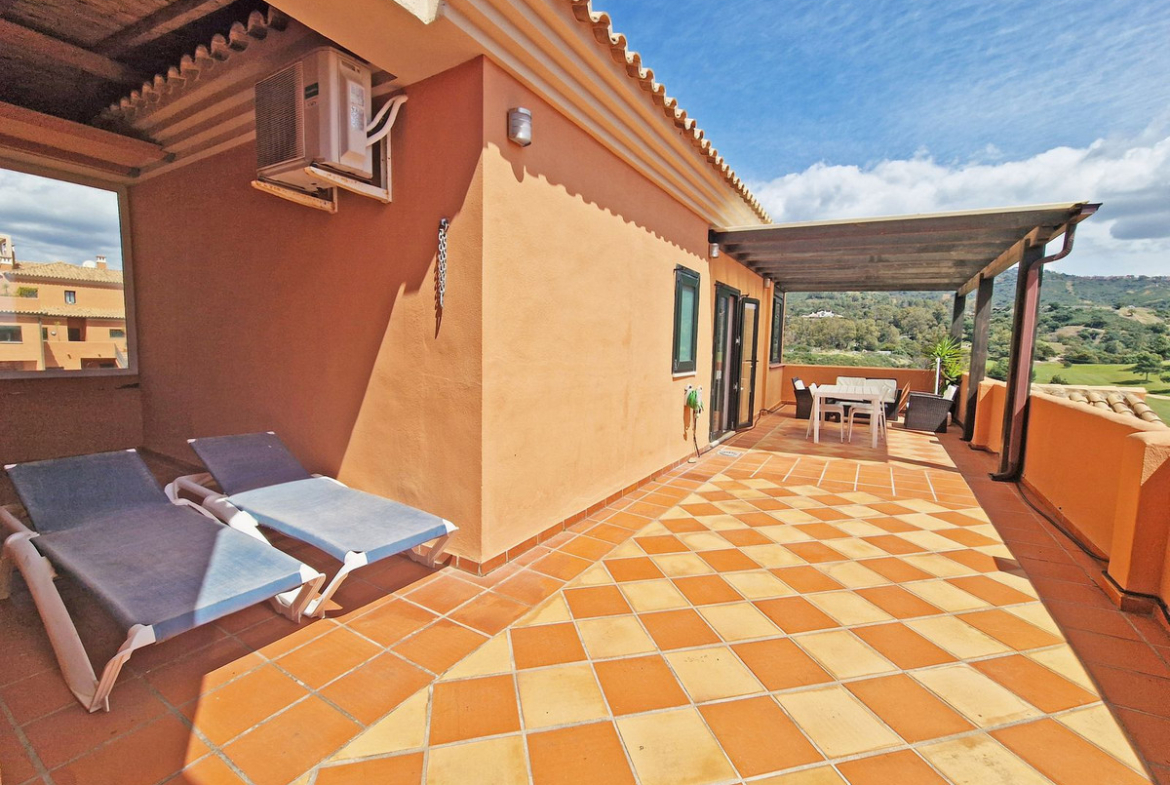This fully independent one-bedroom penthouse, located in the tranquil hills of Elviria, Marbella, offers stunning panoramic views of the sea, mountains, and golf course. From the kitchen to the spacious terrace, every corner invites you to relax and soak in the sun, with total privacy and peace. Whether you're looking for the perfect holiday escape or a serene place to live year-round, this penthouse has it all.