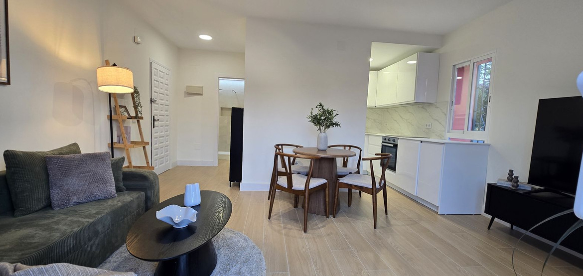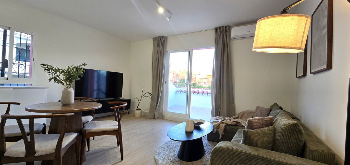 Completely renovated (September 2025) top-floor apartment in the sought-after residential area of Monte Biarritz. Ideally located just a short drive from Atalaya and El Paraíso Golf Courses, only 8 minutes from Puerto Banús, and within 5 minutes of the beach, supermarkets and international schools.