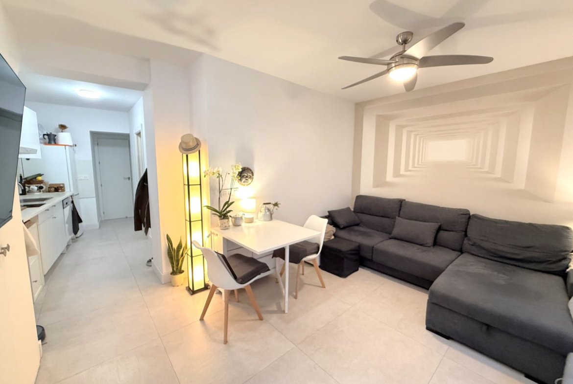 The property has a feeling of a house because you enter your own front door at street level which is ideal if you have children or are elderly as there are no stairs to conquer. You enter into the living accommodation where you will find a bright and sunny West facing property consisting of 1 bedroom, 1 bathroom with an open plan living room and a nice modern kitchen. The bedroom has a door leading to an Andalucian Patio which gives natural light to the rear of the property including the bathroom which is modern with a large walk in shower.