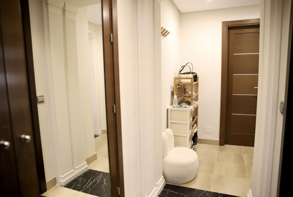 The apartment comprises an entrance hall, kitchen with utility room, living-dining room, 1 bedroom, 1 en-suite bathroom, 1 toilet, dressing room, and a spacious covered terrace, ideal for enjoying the Costa del Sol climate year-round.