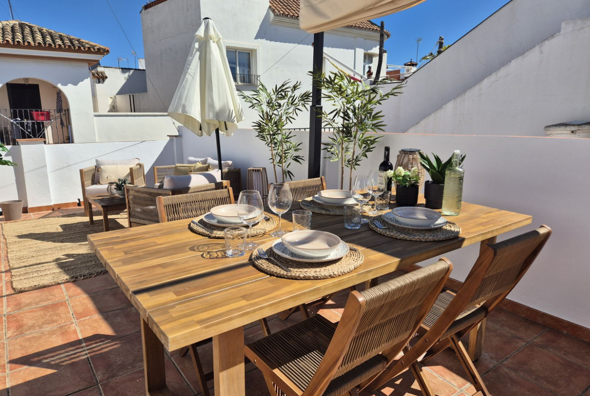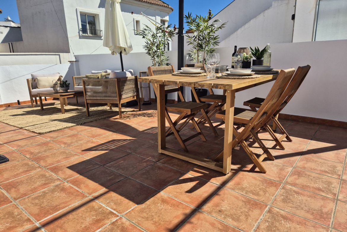 Located on the first floor of a two-story building, the apartment includes exclusive access to a fantastic rooftop terrace—perfect for al fresco dining or soaking up the sun. A great choice for those seeking a cozy getaway in Estepona, with excellent rental potential.