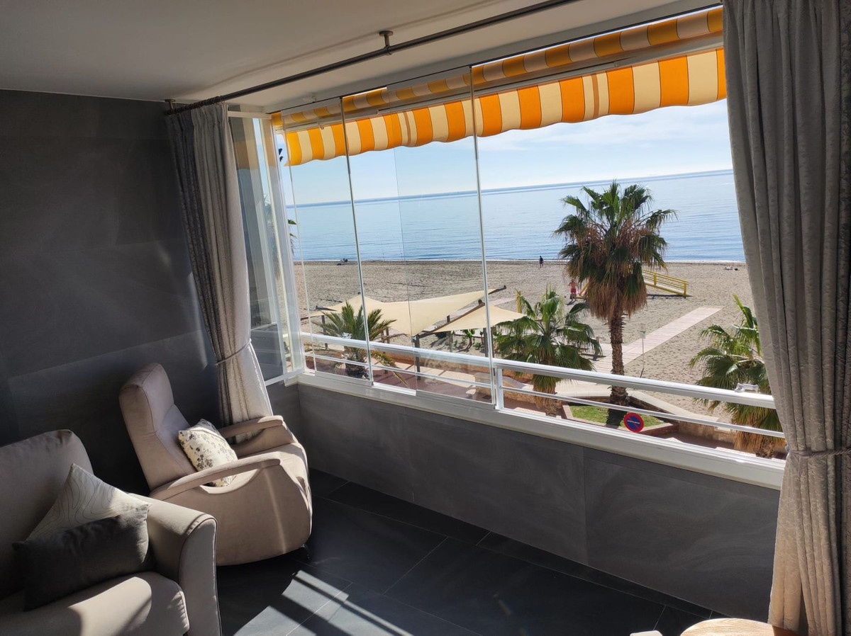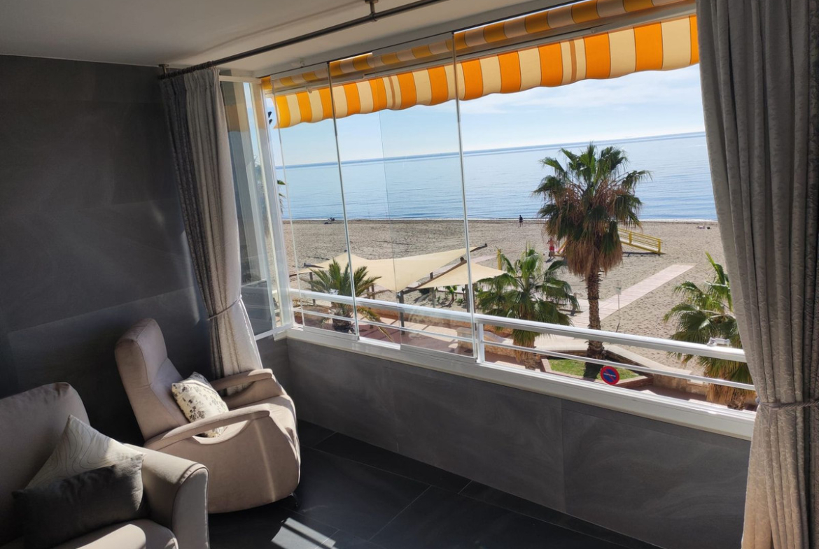 Spectacular apartment on the beachfront, in the Carvajal area in Fuengirola. With stunning sea views, newly renovated! A few steps from shops, beach bars, Carvajal train station. Ready to enter!