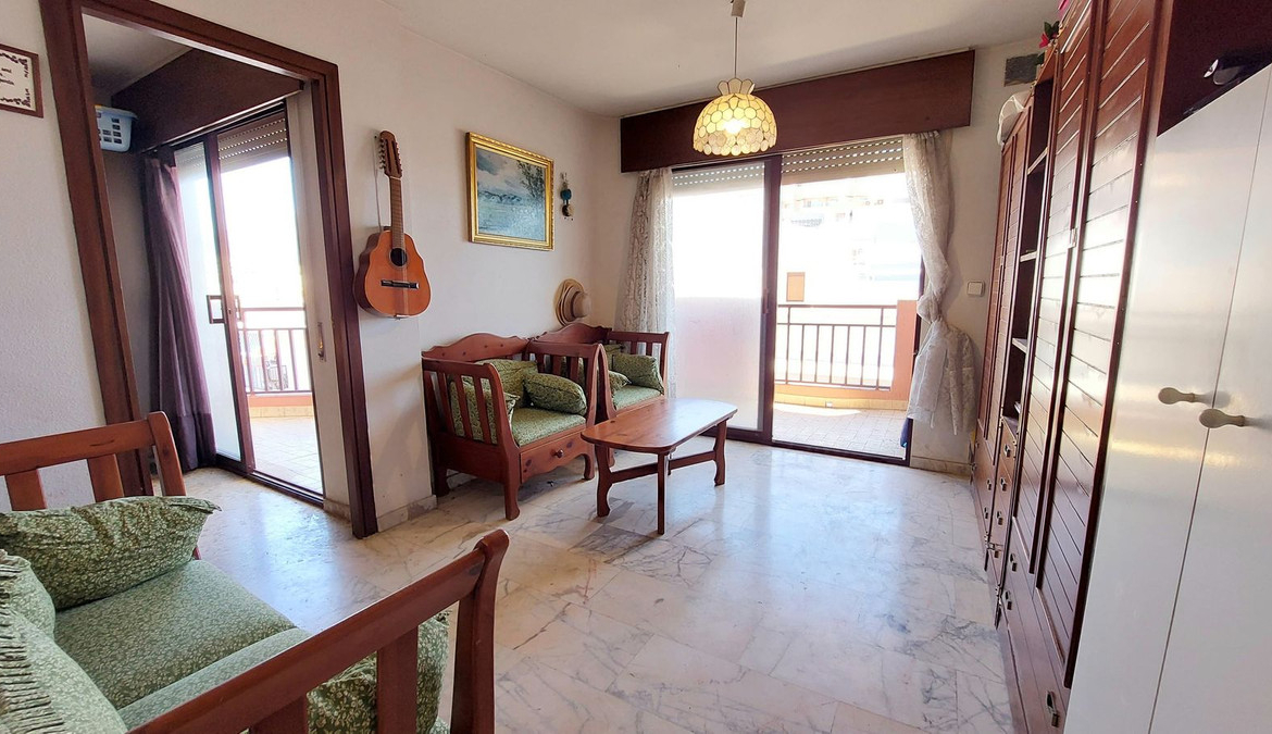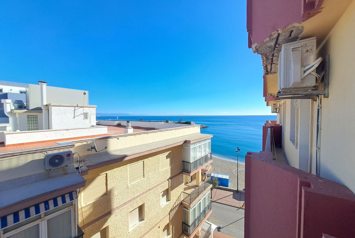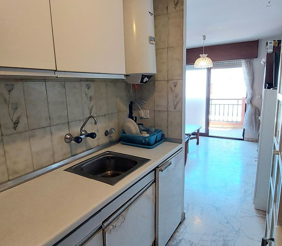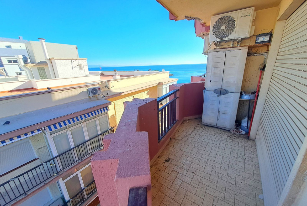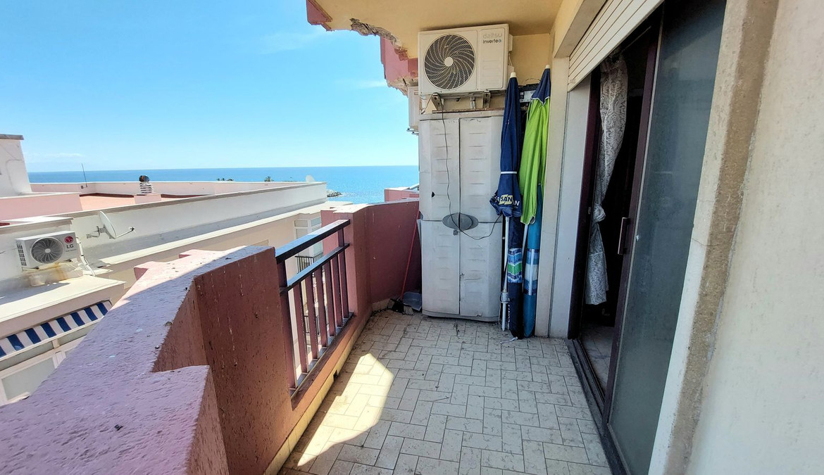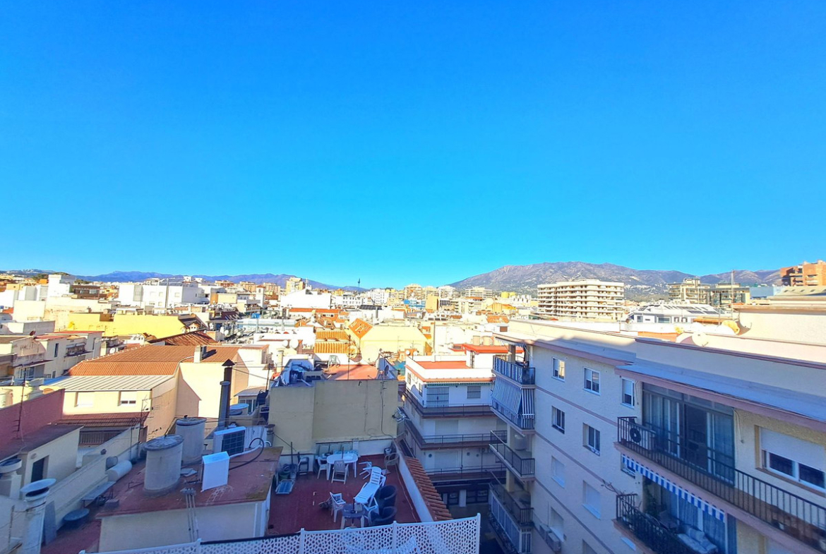 Front line beach flat in the heart of Fuengirola with sea and mountain views. Its excellent location allows you to enjoy all the services and shops within walking distance. The flat has a functional and bright design. It has an open plan kitchen integrated in the living-dining room, which gives direct access to a large terrace ideal to enjoy the Mediterranean climate all year round. The master bedroom includes a built-in wardrobe and also has access to the terrace, which provides great luminosity and a feeling of spaciousness. A bathroom with bathtub. large terrace with breathtaking views, perfect for relaxing or sharing moments outdoors. Ideal as a holiday home, investment with high rental demand, or as a home by the sea.
