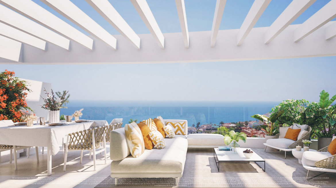 The enviable location of this place offers residents the best of all worlds. Offering stunning sea views from most apartments, it is thoughtfully arranged on a gentle slope within easy walking distance of the bustling Spanish town of La Cala de Mijas. The expansive promenade that lines the wide, pristine beaches is fringed with ‘chiringuitos’, typical Spanish seaside restaurants, while the town boasts a comprehensive array of amenities from supermarkets to banks, bars and restaurants.