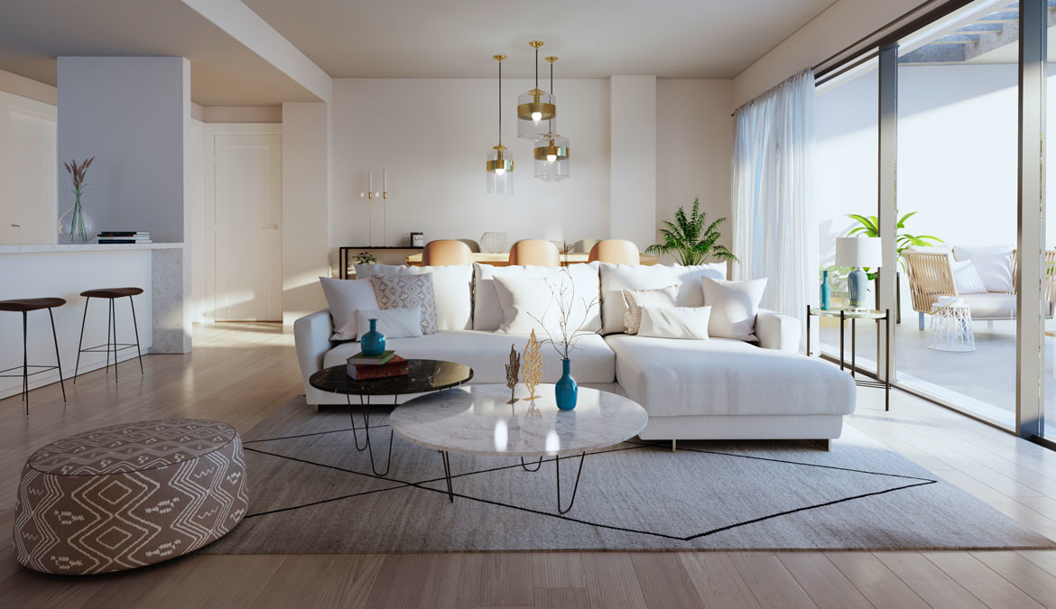 New Development: Prices from €680,000 to €930,000. [Bedrooms: 1 – 2] [Bathrooms: 1 – 2] [Built size: 92m2 – 102m2].