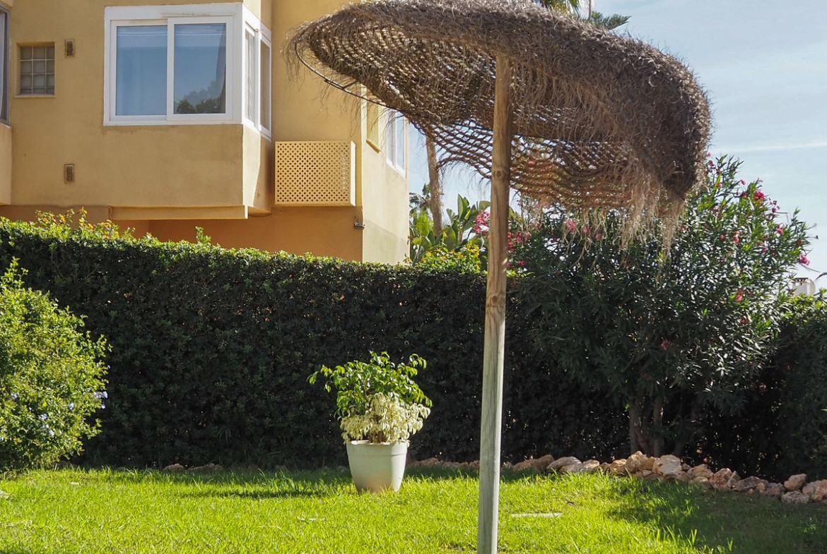 The property is part of a complex with a swimming pool, ideal for relaxing and enjoying the Mediterranean climate.
