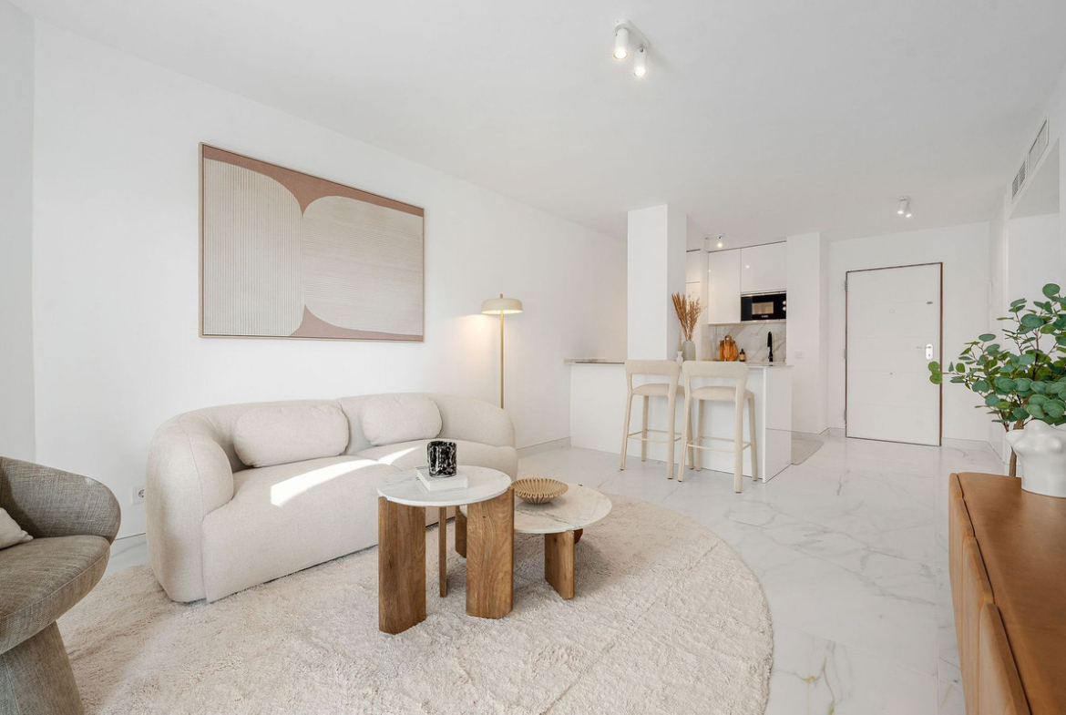 The apartment has been fully refurbished with a contemporary design, the interior features an open-plan layout that maximizes natural light and harmony. The bright living room flows into a sleek, fully equipped kitchen with integrated appliances and modern finishes. The spacious bedroom offers built-in wardrobes and a serene ambiance, while the elegant bathroom showcases high-quality fittings and a clean, modern style.