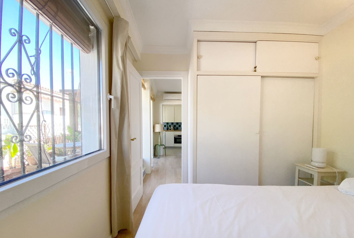 Located on a quiet pedestrian street in Marbella's Old Town, very peaceful and quiet. The apartment has a separate bedroom, a bathroom with a shower and an exterior window, a cozy living room, and a fully equipped kitchen with a dining area, both with direct access to a fantastic outdoor terrace of aprox. 25 sqm, where there are different areas to relax or sunbathe on the sun lounger, or to sit and eat outside.