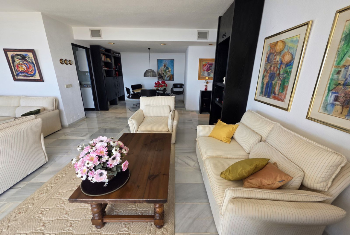 Unique opportunity to purchase two apartments which were united into one big apartment in the famous Torre Real in Marbella. Offering a total of 120m2 living and 98m2 terraces all around. Due to the location on one of the last floors of the building, you enjoy stunning views to the sea, views along the coast and to the mountains. The property comes with two private parking in the underground garage and a storage room. The gated community is also very special with large community grounds, gardens, pool areas and two tennis courts. The building offers a lift and a concierge service. About 10minutes from the historic part of Marbella town and only 45 minutes from the Málaga airport and city.