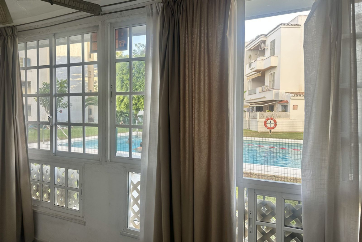 Fantastic opportunity in the sought-after Marbella del Mar complex, set directly on the beachfront and only 10 minutes’ walk to Marbella Old Town. This 1-bedroom, 1-bathroom ground floor apartment offers a spacious terrace with pool views and lateral sea views, ideal to reform and create your dream coastal residence or a profitable holiday rental.