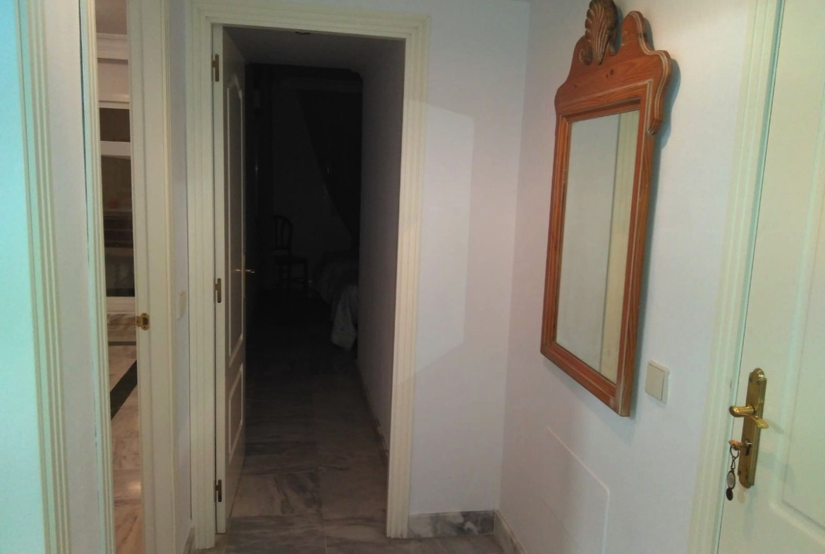 In excellent condition and fully furnished, the apartment features elegant white Macael marble floors throughout, ensuring a bright and luxurious feel. The building offers an elevator and adapted access for added convenience.