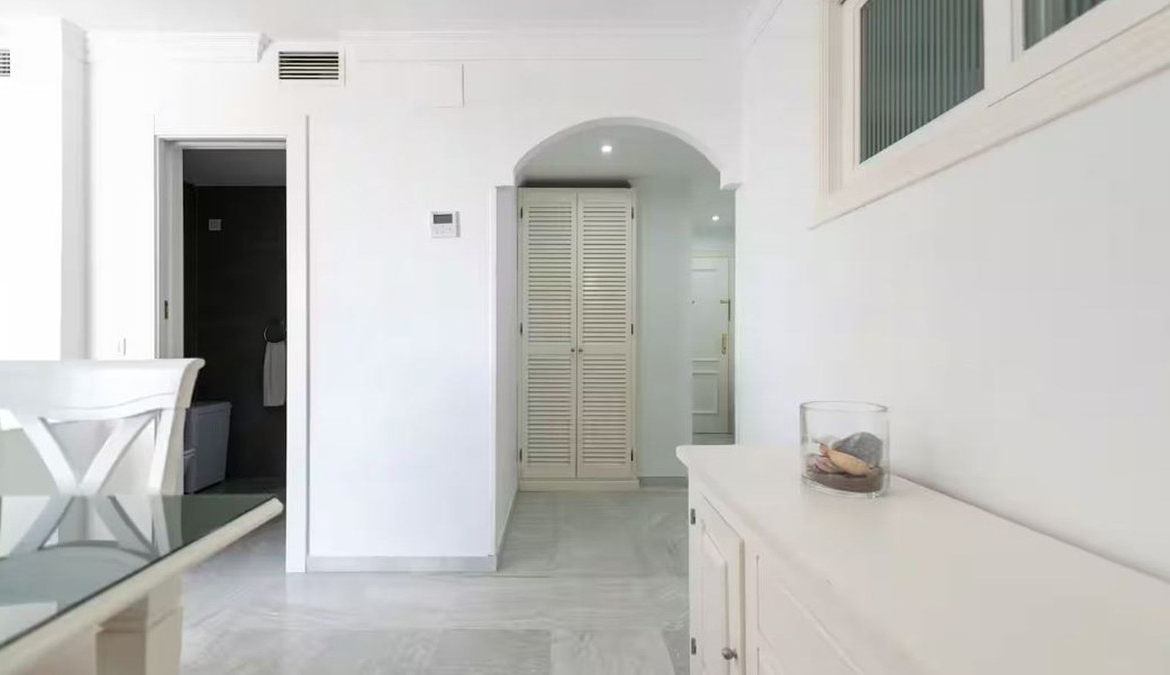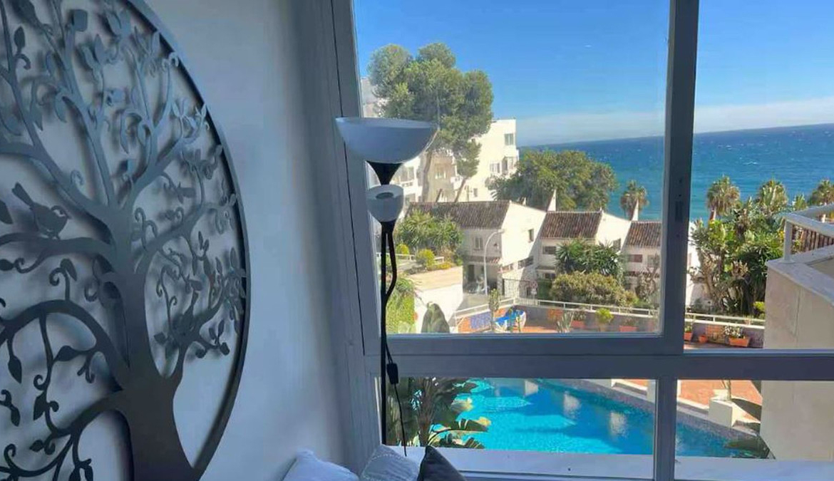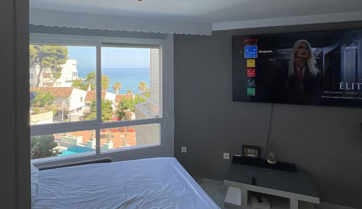 Beautiful, fully furnished and equipped studio apartment located in an iconic Marbella building, just steps from the beach in the town center and its promenade. South-facing, it has a total built area of ​​52 m². The layout includes an entrance hall, separate bedroom, bathroom, fully furnished and equipped kitchen, and living/dining room. Enjoy stunning views of the sea, garden, and communal pool. Ideal as an investment, holiday home, or for those who prefer to be close to all amenities and the charm of Marbella. High-quality construction, air conditioning, concierge service, well-maintained common areas, and a beautiful garden with a communal pool. A select community of residents where tourist rental licenses are not granted.