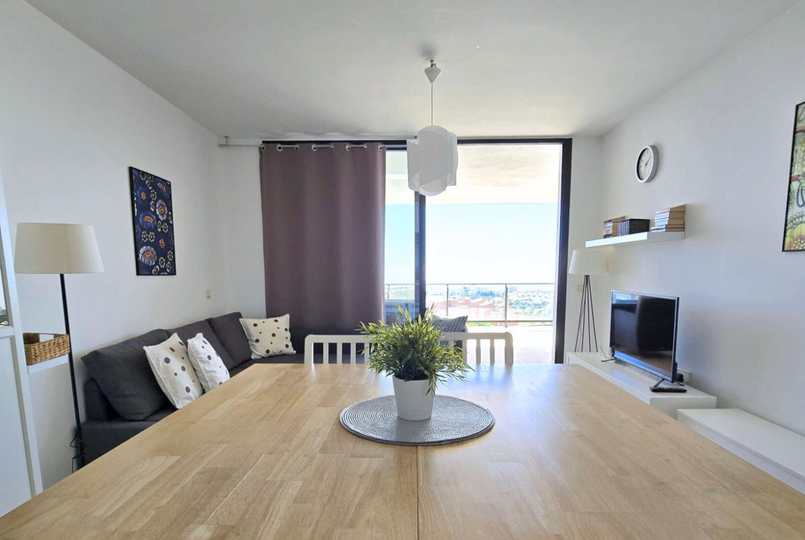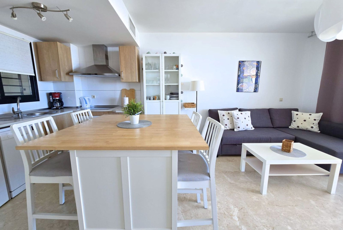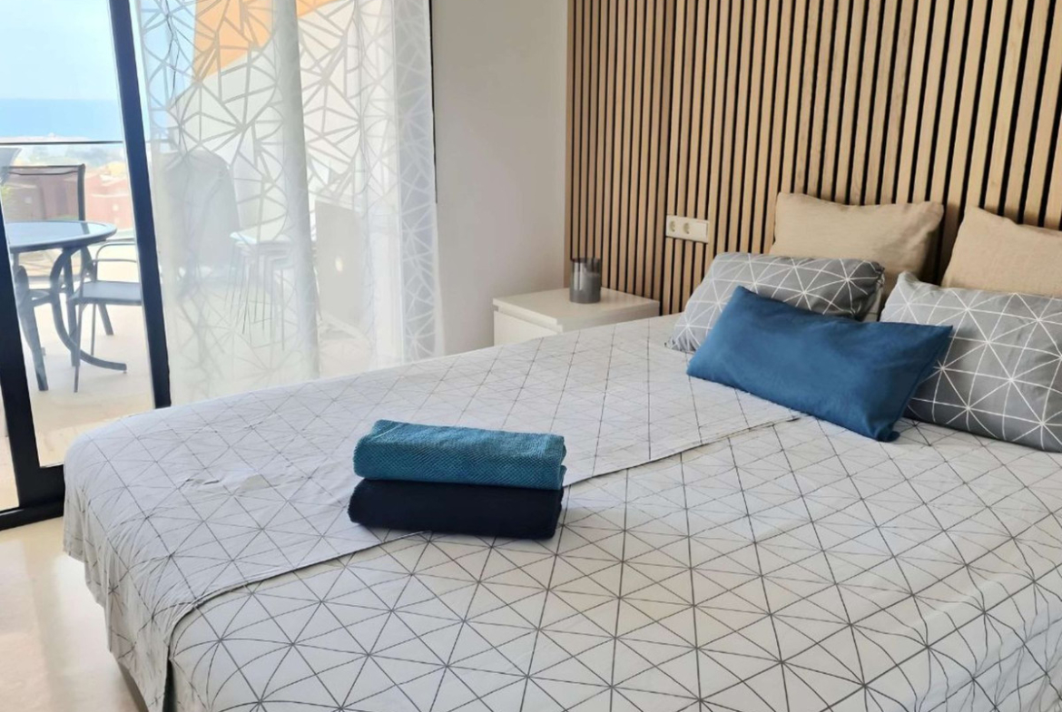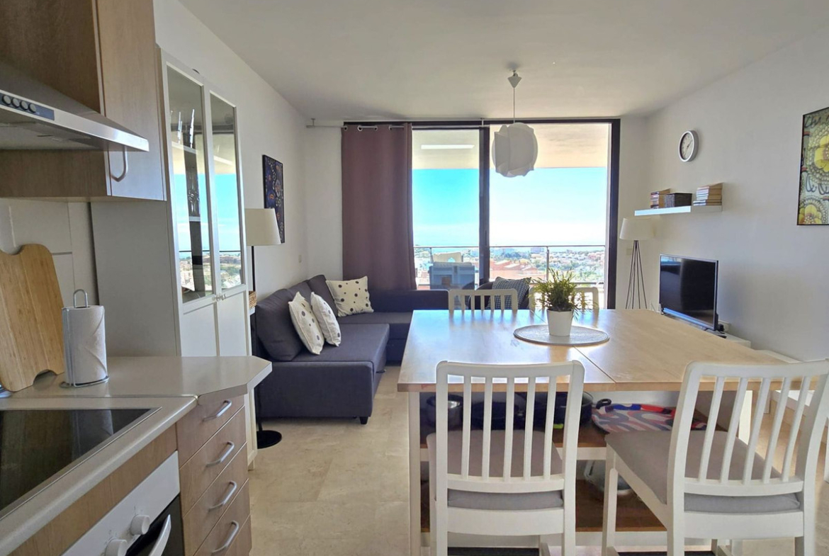 Beautiful apartment with spectacular sea views, and only 6 minutes by car from the beach, has 1 bedroom, a sofa bed in the living room, air conditioning and Wi-Fi.