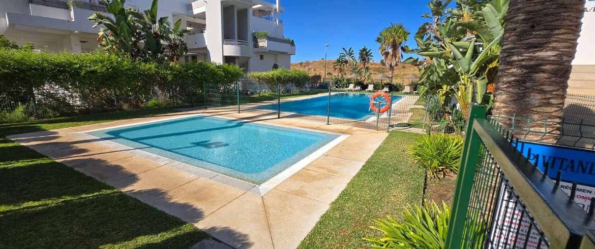 3551-V Spectacular apartment for sale in an urbanization with gardens and 6 swimming pools, on the first floor with elevator, consisting of a very spacious living room with fireplace and cassette, a fully furnished independent kitchen of high quality, 1 double bedroom with two built-in wardrobes, a bathroom with jacuzzi bathtub, a patio of more than 24m2 with barbecue and shower that overlooks the gardens of the urbanization, centralized air conditioning hot / cold, 1 parking space for a car and a motorcycle, a storage room, the apartment is modern and very well maintained, ready to move into immediately, golf courses 5 minutes away and the beach 10 minutes away.