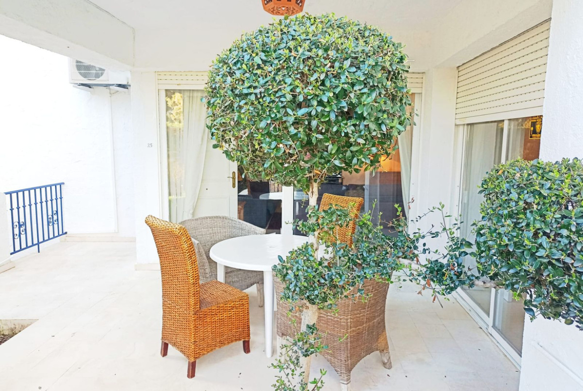 This splendid and bright apartment features a spacious bedroom with direct access to a large terrace, perfect for enjoying the Costa del Sol climate. From the living-dining room, you can also access another large terrace that connects directly to a stunning private garden filled with palm trees and tropical plants, creating an exclusive atmosphere reminiscent of a private cottage.
