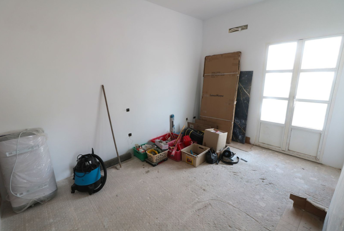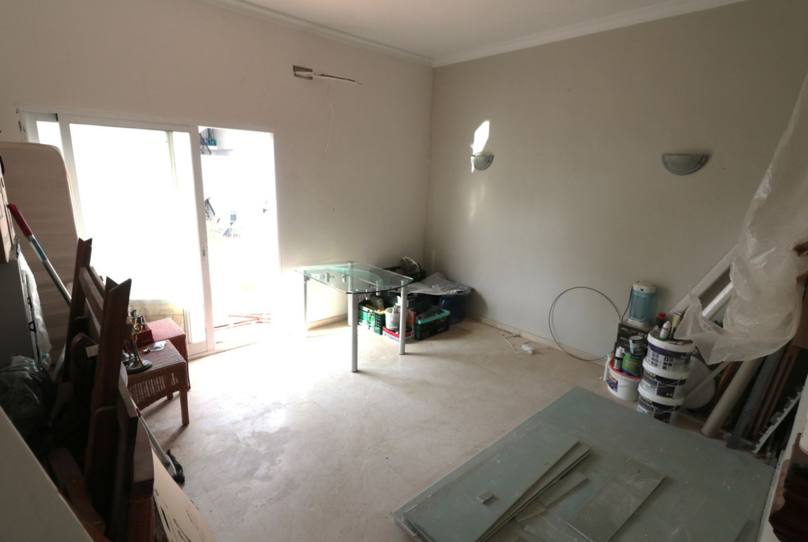 Only 1000 metres from the beach is this fantastic rough diamond of a holiday apartment or permanent home with a sunny living room with the access to the big balcony, an open american kittchen (unfinshed) and a good sized bedroom with a small balcony and the bathroom (unfinished) on suite for making ideas into reality. Lots of natural light is coming in and gives the apartment a cozy feeling even without furniture.