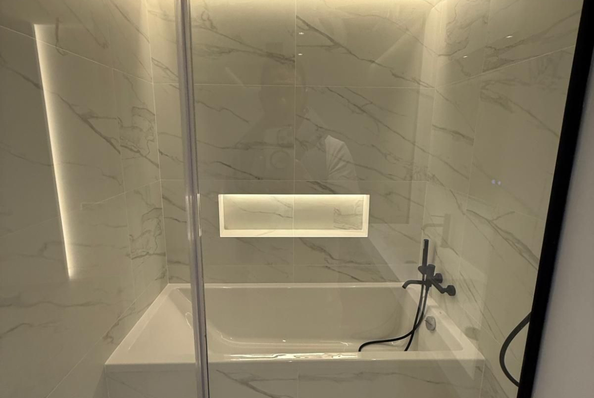 The apartment features a bright open-plan living and dining area designed to maximise light and the sense of space, seamlessly connecting with the private garden of 95 m², where pleasant views and a high level of privacy can be enjoyed. The main bedroom is spacious and bright, with a walk-in wardrobe and en-suite bathroom, ensuring comfort and independence.