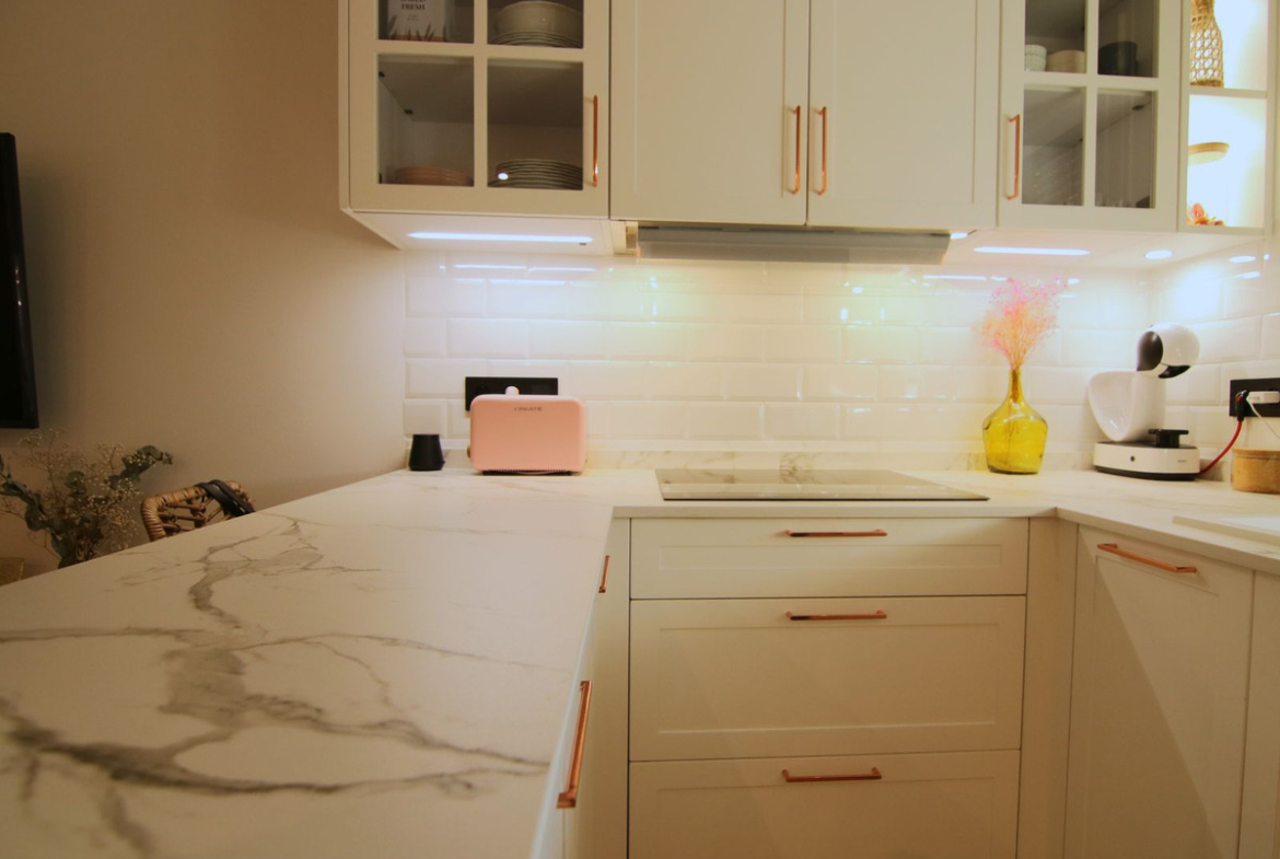 Designer kitchen with breakfast bar, fully equipped with top-brand integrated appliances