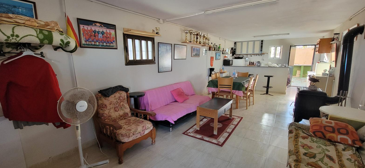 The finca itself is 57m2 all on one level with access from both the front and the rear. Having an American kitchen and log burner with external storage room for a wardrobe. The rear leads to a secluded courtyard with outside bathroom and gas boiler.