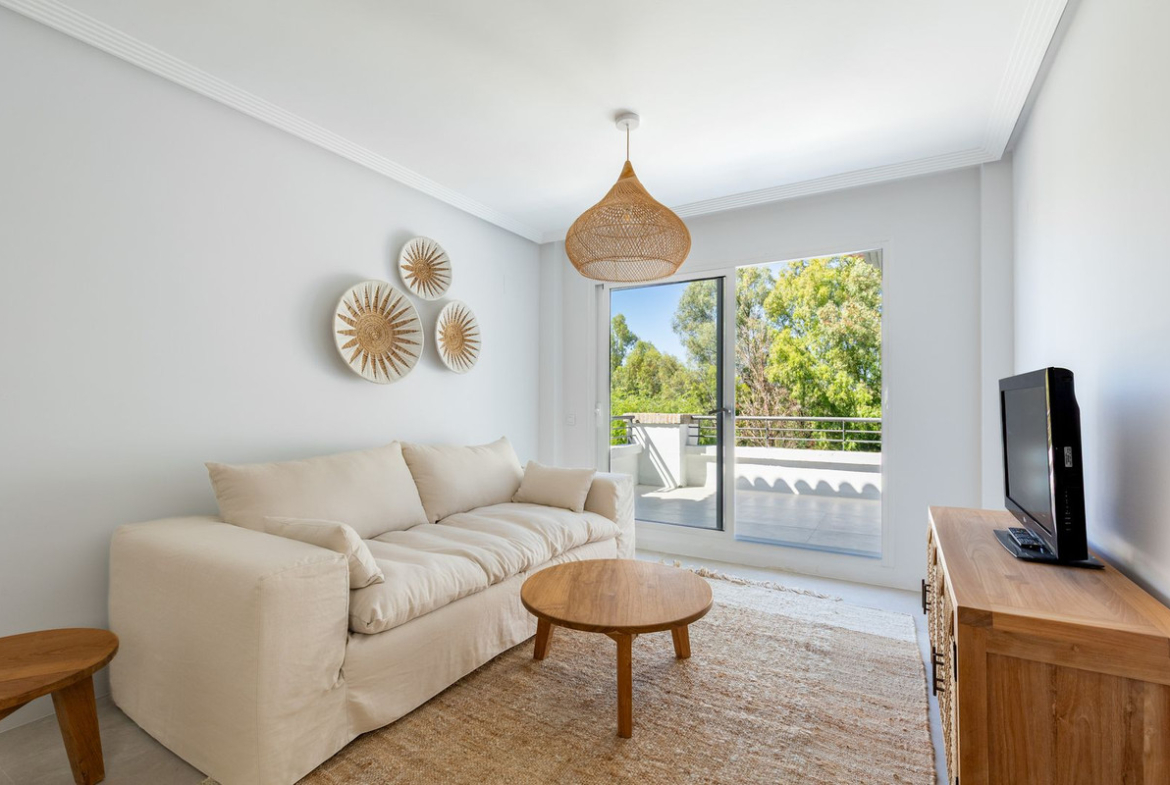 This beautiful apartment in El Lago, Los Arqueros, has an area of 178 square meters, of which 79 square meters are inside with an adjoining terrace of 20 square meters and a solarium of 79 square meters with kitchen, barbecue, 2 toldos, a sofa and a table with chairs. It has been completely renovated in 2025, including the windows with electric shutters. The kitchen + utility room and the 2 bathrooms are completely new, including plumbing and electricity. The new furniture is included, including a washer-dryer. A beautiful swimming pool with sunbeds 50 meters from your front door. In this apartment you can immediately enjoy your stay on the Costa del Sol. El Lago is located directly on the golf course of Los Arqueros and El Higueral. By car you are on the beach in 10 minutes, near San Pedro, Puerto Banús and Estepona. In 5 minutes you are in the beautiful village of Benehavis, full of atmosphere and coziness. don't miss this opportunity