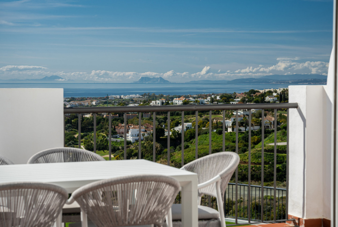 This exclusive 2-bedroom, 2-bathroom penthouse offers an unparalleled lifestyle in one of the most prestigious communities on the Costa del Sol. Featuring a modern, bright design, high-end finishes, and a fully equipped kitchen, this property combines comfort and elegance. The master bedroom includes an en-suite bathroom, while the spacious private balcony boasts breathtaking views of the sea, Gibraltar, and Africa. The highlight of the apartment is its rooftop terrace, perfect for relaxing and enjoying stunning panoramic views of the mountains and the prestigious Villa Padierna.