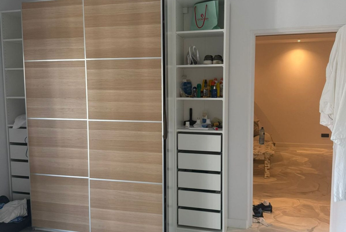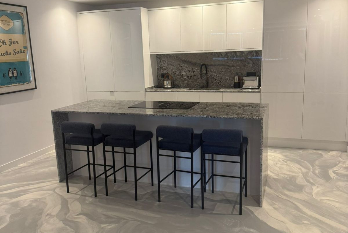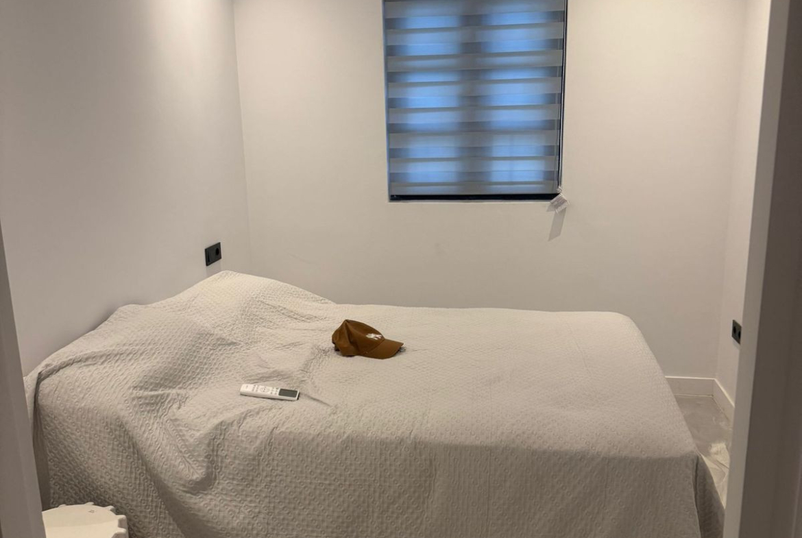 Spanning 90 m² of meticulously redesigned space on the first floor (no lift, interior position for added privacy), this east-facing gem has undergone a complete renovation this year: new electrical and plumbing systems, state-of-the-art air conditioning units, sleek resin flooring throughout, innovative folding windows for seamless indoor-outdoor flow, premium marble countertops and sink in the kitchen, and new aluminium windows enhancing energy efficiency and natural light. The layout features two spacious bedrooms with fitted wardrobes, two modern bathrooms, a bright living-dining area with sea views from the window, and a private entrance adding exclusivity. Step out to the beautiful communal pool, offering stunning vistas over the golf course and sea—ideal for relaxation or entertaining.