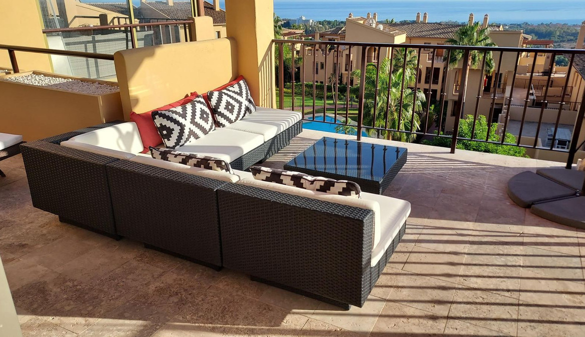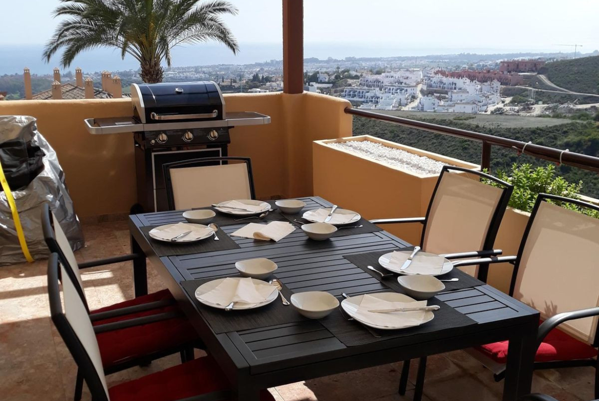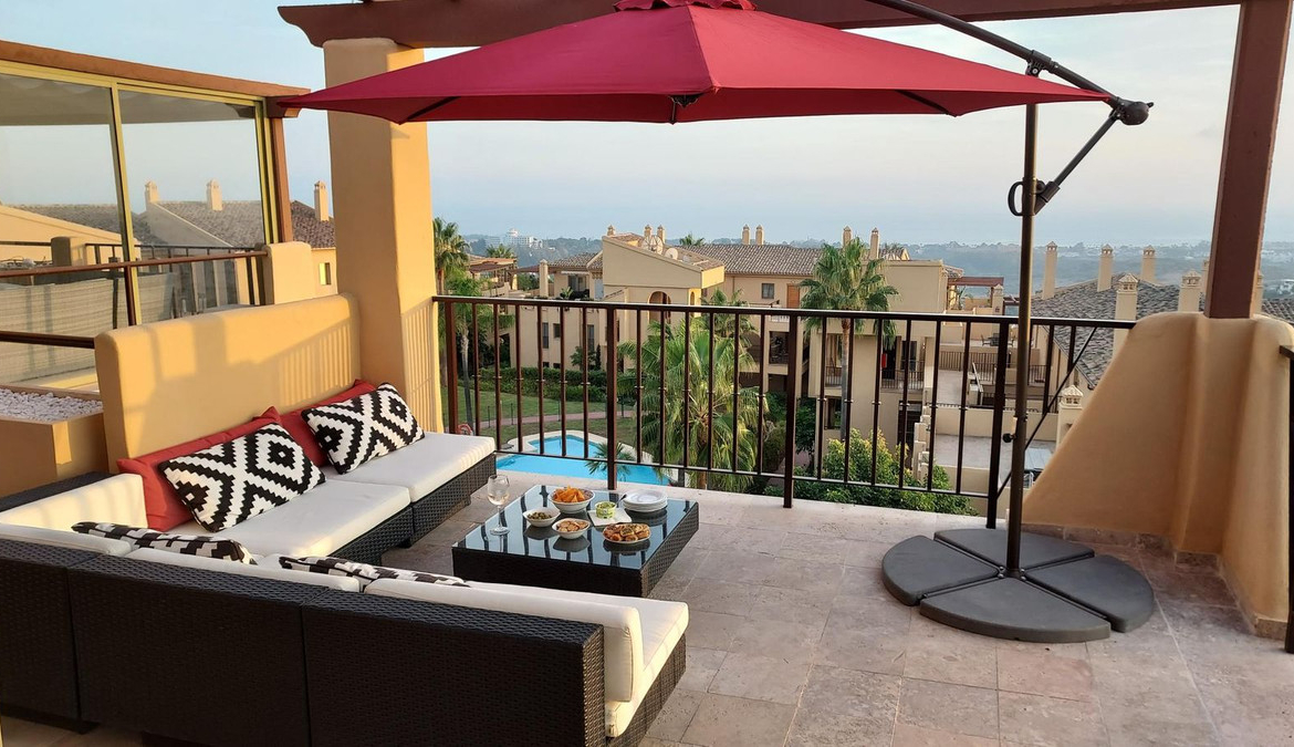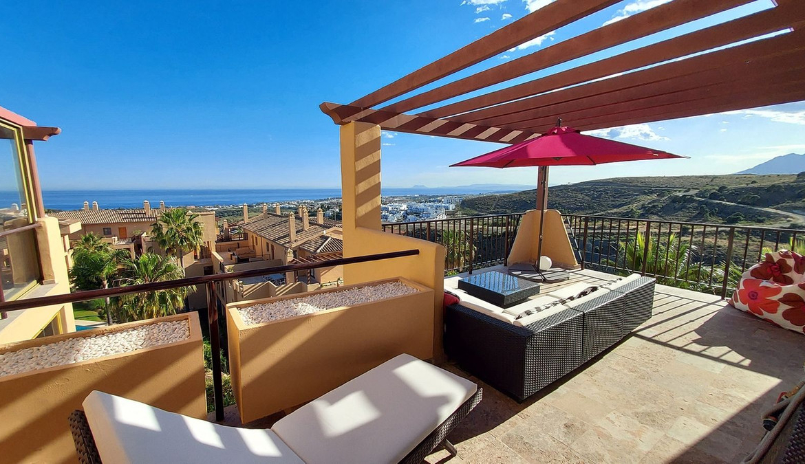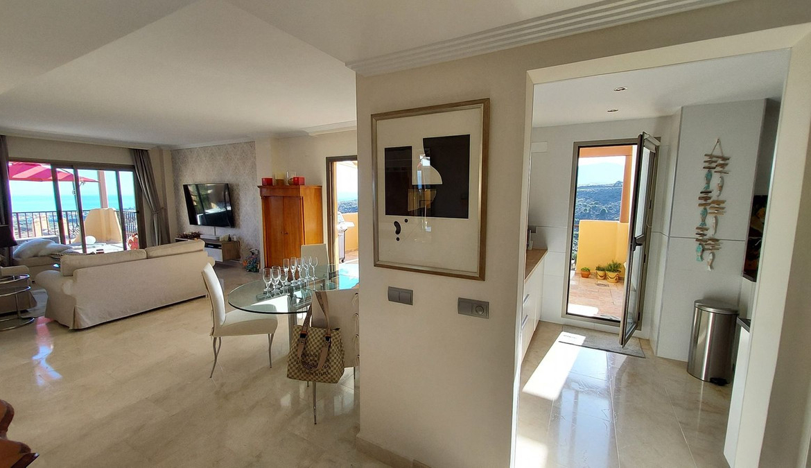 This exceptional 2-bedroom, 2-bathroom corner penthouse is located in the sought-after gated community of La Hacienda del Señorío de Cifuentes in Benahavís. Perfectly south-facing and elevated, it offers breathtaking panoramic views of the Mediterranean Sea, Gibraltar, the African coastline, and the surrounding mountains.