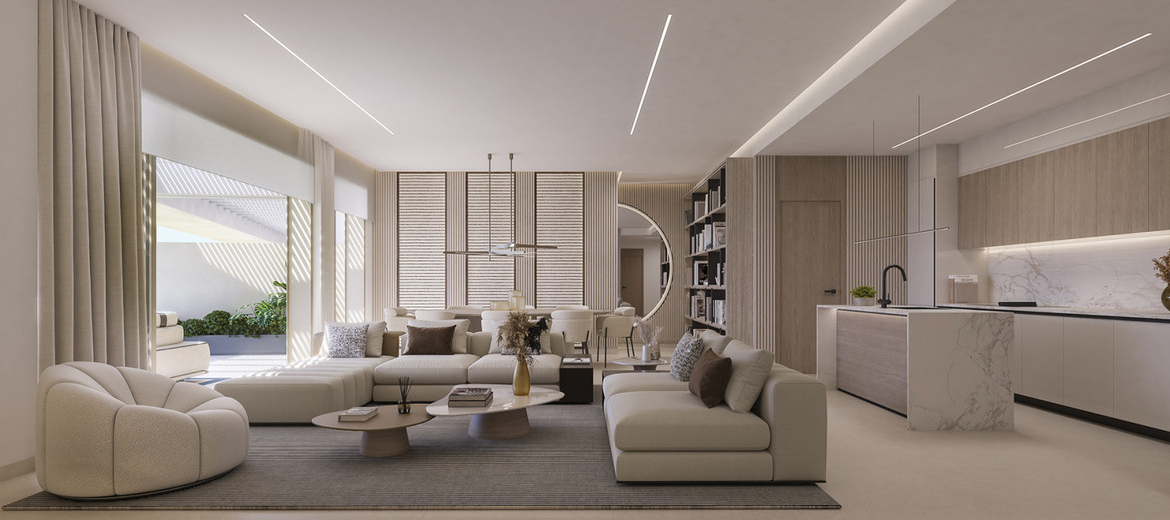 The development comprises just 21 high-end residences, including contemporary apartments and penthouses, ensuring privacy and exclusivity. Each home emphasizes openness and natural light, with floor-to-ceiling windows and spacious terraces offering panoramic views of the Mediterranean coastline and surrounding hills. Interiors feature premium finishes, sleek open-plan kitchens with top-tier appliances, and energy-efficient aerothermal climate systems.