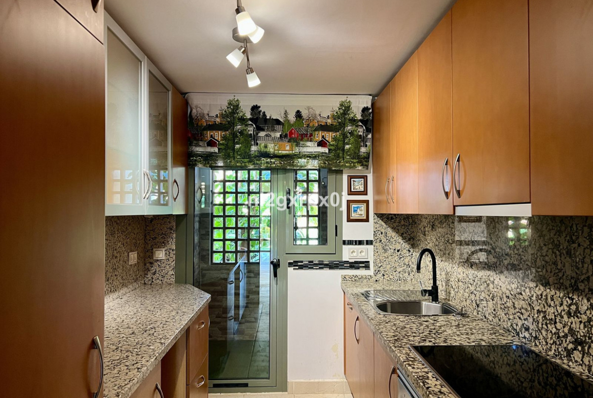 Benatalaya ground-floor apartment with a private corner garden, very private, in a gated community with 24-hour security, in a very quiet and private area, belonging to Estepona, Costa del Sol.