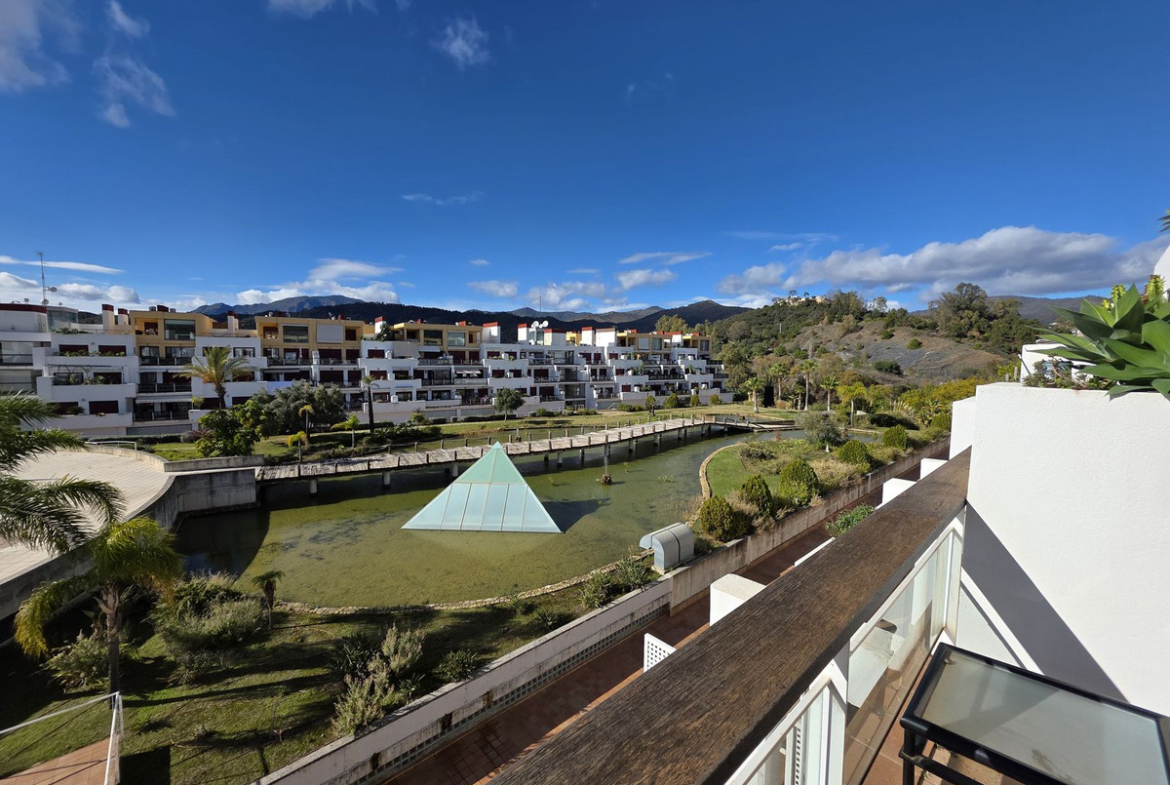 This bright and spacious one bedroom duplex penthouse is located in a popular residential complex above Selwo, along the New Golden Mile, less than 10mins drive from beaches and shops. This property is very versatile giving the buyer the option of creating a second bedroom and bathroom on the mezzanine level upstairs should a further bedroom be required. The 43m² of west facing terraces offers open views of the urbanisation, sea and surrounding countryside, making it the ideal place for alfresco dining, lazy summer siestas or watching the glorious sunsets that Marbella is famous for.