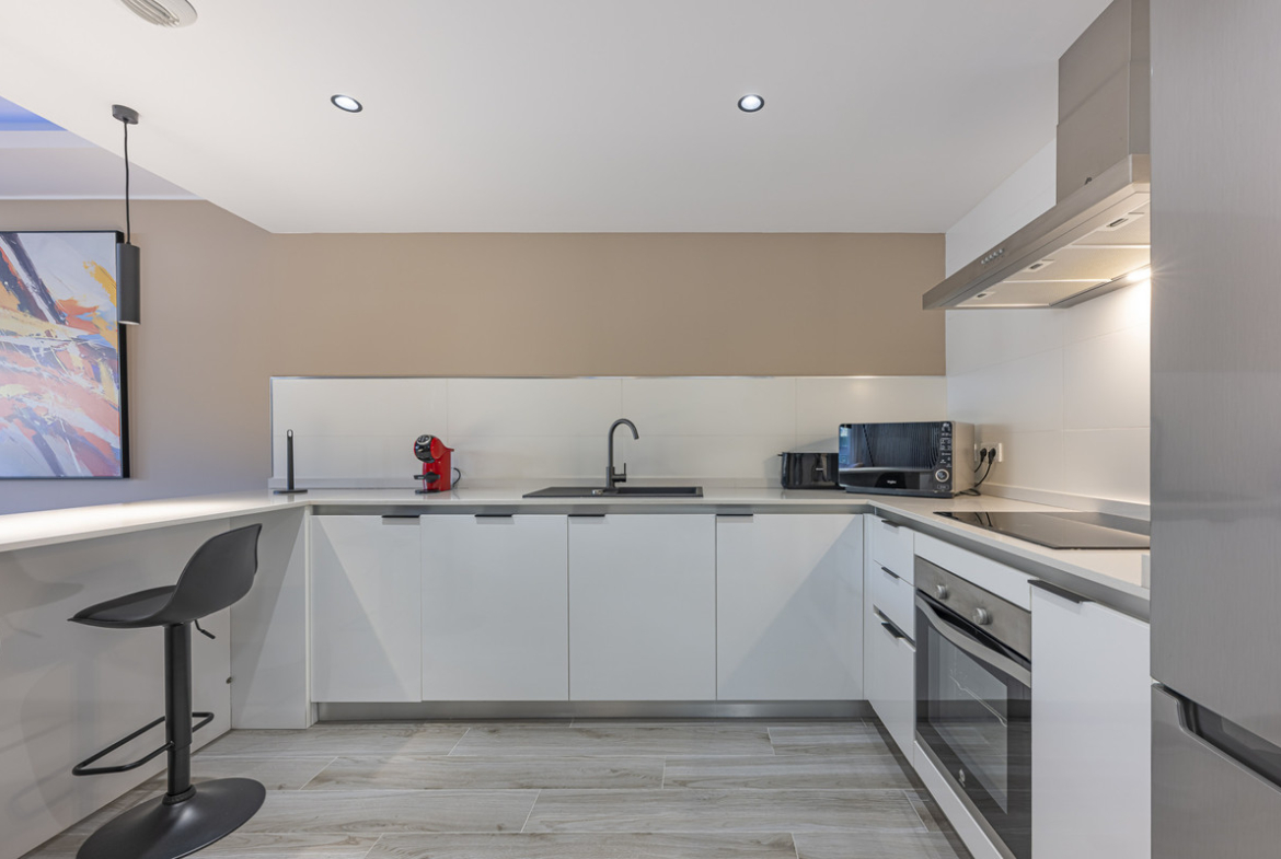 Elegant ground floor apartment with a fantastic 61 m² private garden, located in the modern Riverside residential complex in the prestigious Benahavis area, is ideal place for living or investment. The surrounding area offers playgrounds, padel,football and basketball courts, and a school just across the street. It is also a great investment opportunity, as rental demand will remain throughout the year.