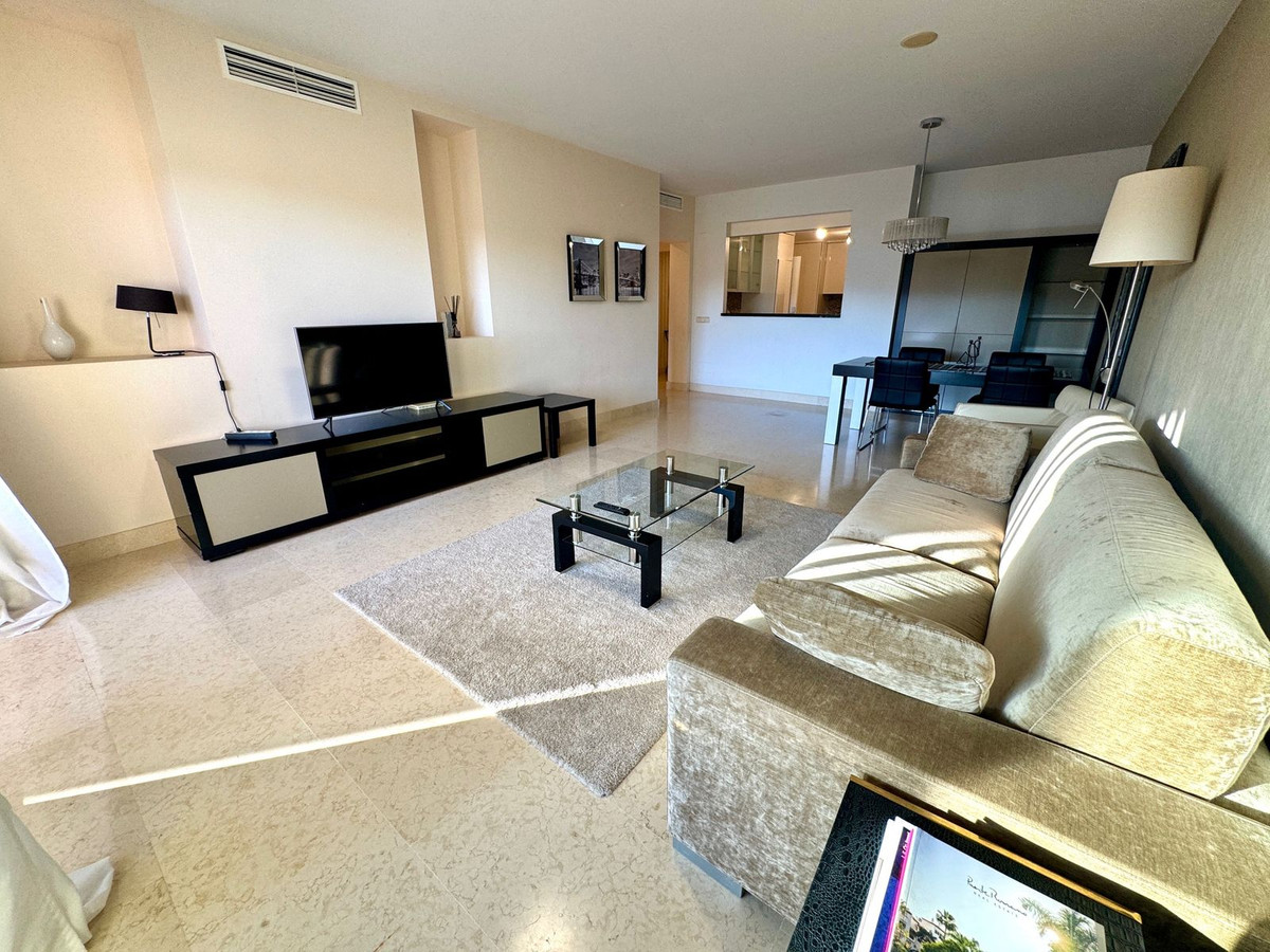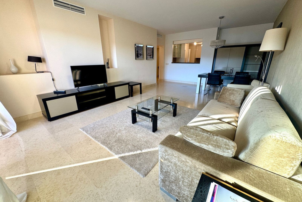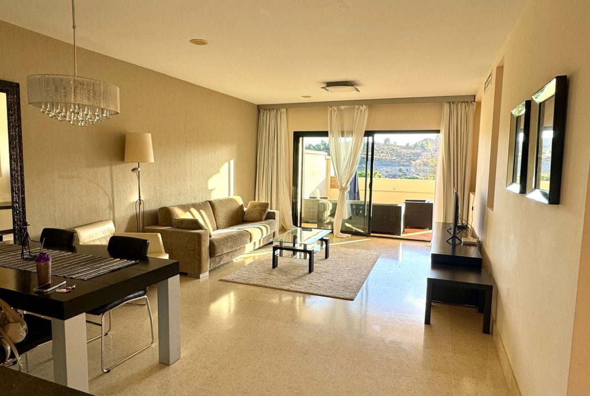 Beautiful and spacious 2 bedroom apartment located in the five star urbanisation of Capanes Del Golf, Benahavis. This apartment enjoys wonderful golf, lake and mountain views. The kitchen has been made open plan into the lounge. This apartment can very easily be converted into a 3 bedroom if you so wish as there is plenty of space to do this change. Both the master bedroom and second bedroom have en suite bathrooms. The property enjoys a large terrace to enjoy the morning sun. You will enjoy beautiful sunsets from this terrace. There is one storeroom and one parking space in the garage.