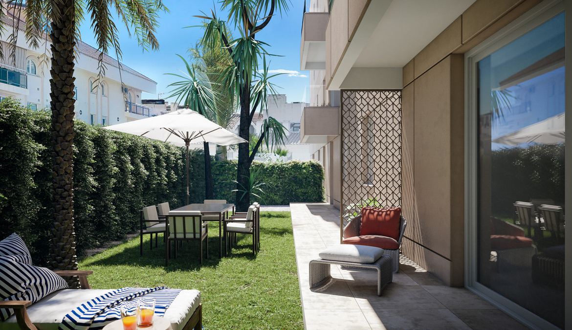 5-storey high building where you can choose between 2 and 3 bedroom homes, from ground floor with garden to penthouses with large terraces and private solarium.