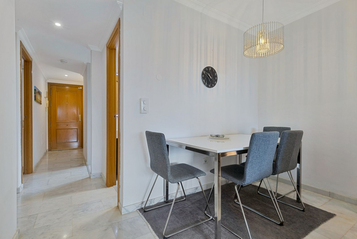 Welcome to this beautifully renovated and fully furnished two-bedroom apartment in the lower part of Carvajal, just a short walk from the beautiful beaches of the Mediterranean Sea. This bright and spacious two-bedroom home offers stunning sea views all the way to the Sierra Nevada. With a large, glazed balcony that is like a second living room in the apartment, you can enjoy the beautiful Costa del Sol sunrises.