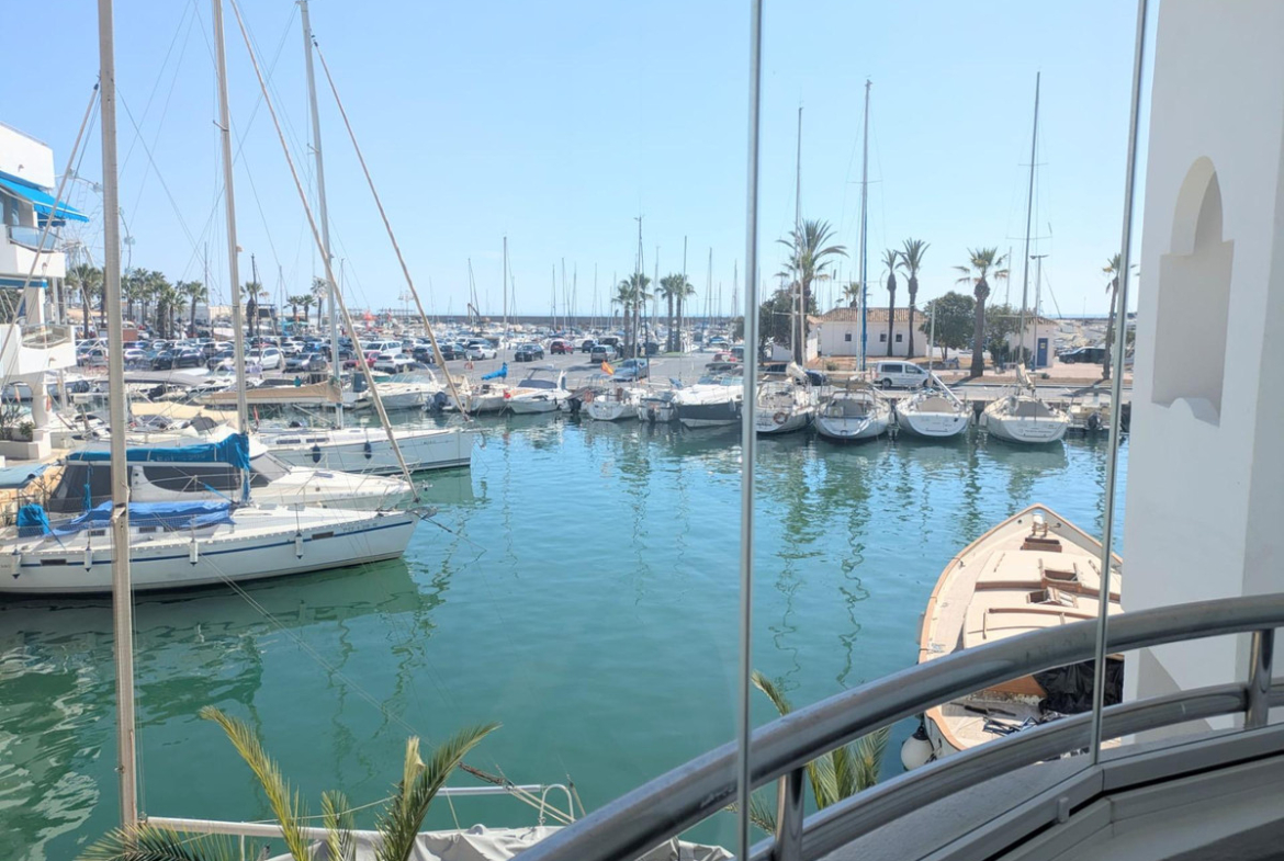 Apartment for sale in the best location in Benalmádena – The Islands in Puerto Marina. Beautiful views of the port and the sea. 2 bedrooms, 2 bathrooms, living-dining room, equipped kitchen and 2 large terraces. Air conditioning, fitted wardrobes and fully furnished. In a building with elevator, large pool and rooftop solarium. Private garage space and storage room included in the price. Great opportunity, won't be on the market for long!
