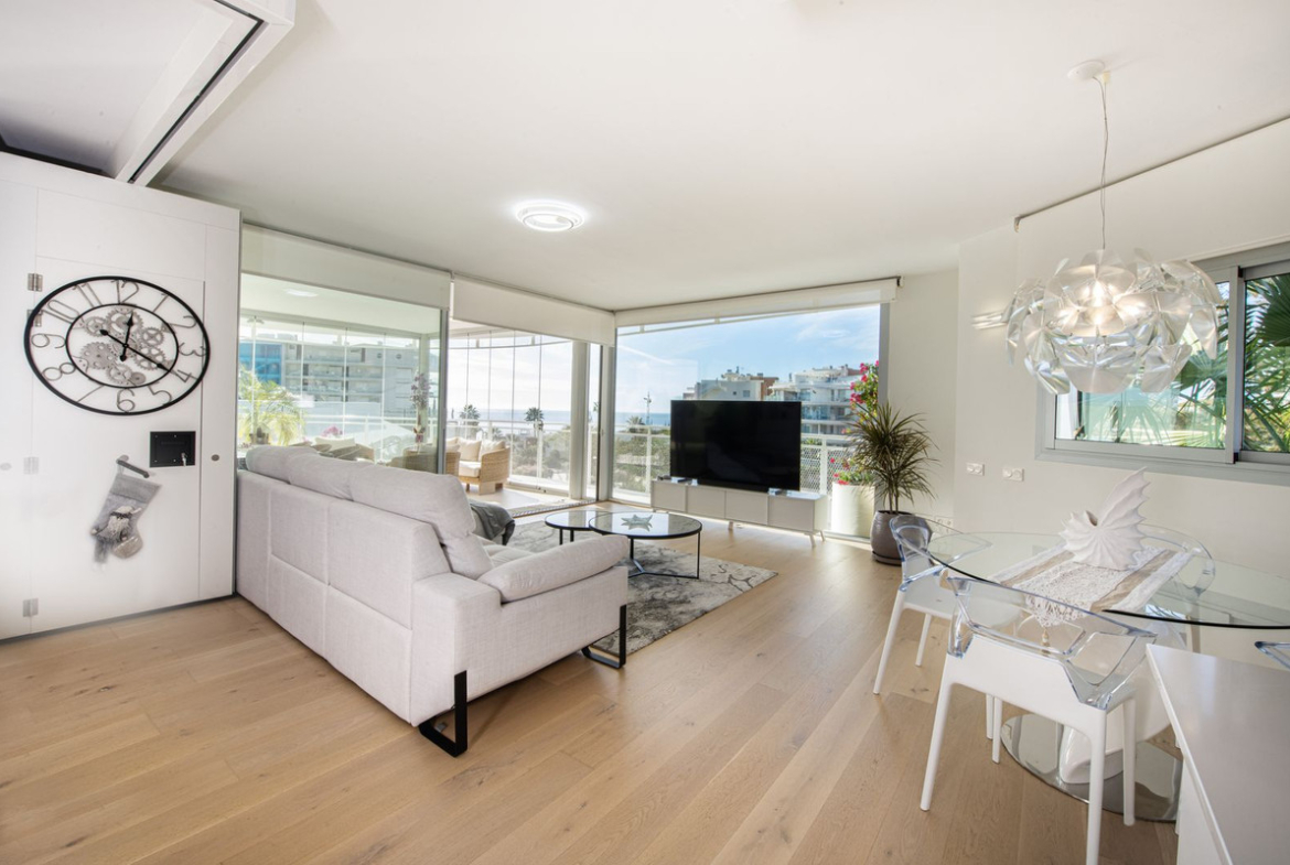 Discover paradise by the sea in this spectacular luxury apartment in El Higueron! Located in an exclusive residential area, this apartment offers you an unrivalled living experience with breathtaking views to the sea and the port. The property has a master bedroom with en-suite bathroom and offers the possibility to transform it into a spacious second bedroom with en-suite bathroom. The property has a modern open concept design that integrates the living room and kitchen, ideal for enjoying unforgettable moments.
