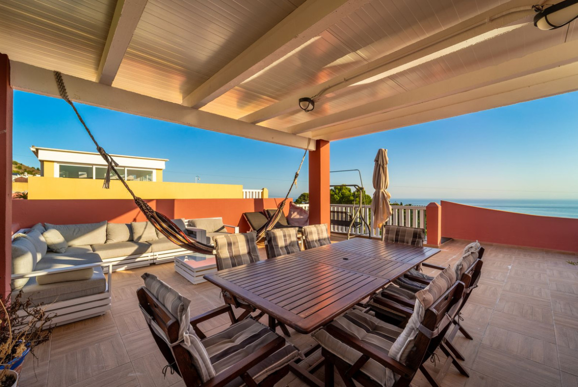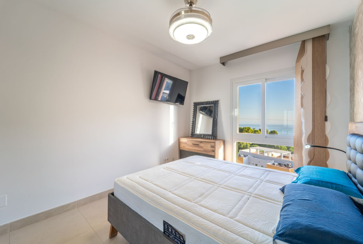 Fabulous south facing penthouse located in the exclusive urbanization Reserva del Higuerón, with 2 bedrooms and 2 bathrooms, open plan kitchen fully furnished and equipped with electricial appliances, spacious living-dining room leading out to an 18m2 uncovered terrace with beautiful sea views. On the top there is a large solarium of 60m2 with BBQ and panoramic sea views. Built-in wardrobes in both bedrooms, air conditioning in living room. Includes a parking space. Cosy community with swimming pools and gardens.