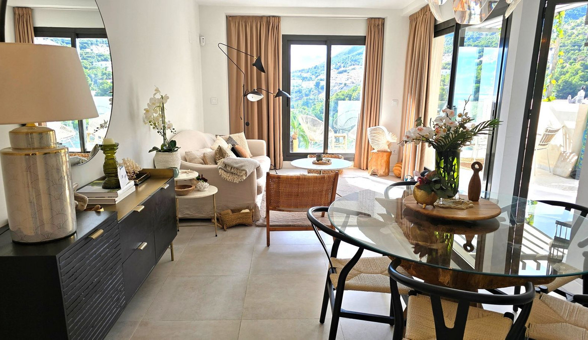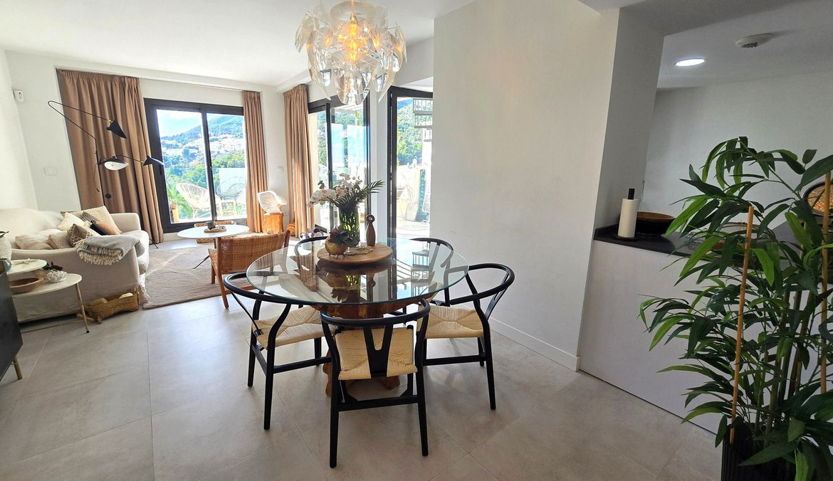 As you step into this beautifully presented Horizonte penthouse, the first impression is all about light, openness, and a refined modern aesthetic that instantly makes the space feel inviting. The layout has been designed with everyday comfort in mind, offering a seamless flow from the living area out to the spacious terrace, where the panoramic sea and mountain views create a constantly changing backdrop throughout the day. Thanks to the privileged south-to-west orientation, the penthouse captures sunshine from morning to sunset, enriching both the interior and exterior areas with natural warmth and brightness.