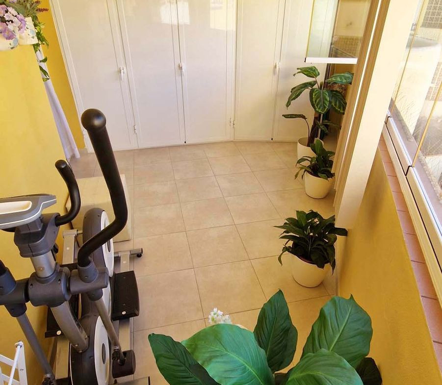 Two bedrooms with wardrobes and one bathroom – ideal for families or hosting guests. The private terrace can be closed off with glass curtains installed by the owners, along with electric blinds. Garage space is included in the price and has facility for charging electric cars.