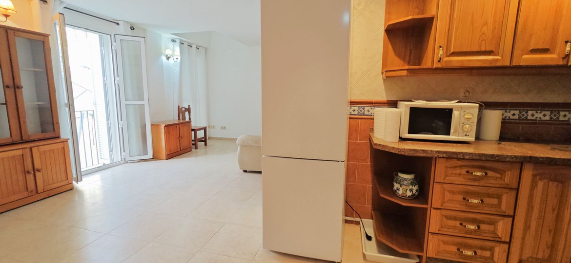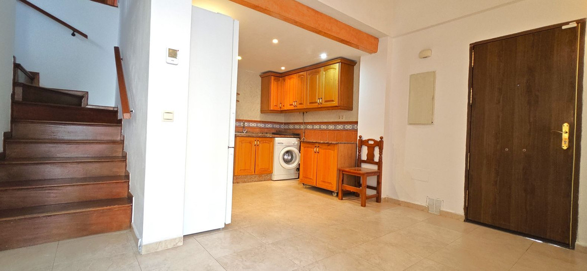 Duplex apartment for sale in the heart of Benalmádena Costa, located in a charming square on the second line of the beach. The apartment is a duplex with 2 bedrooms and 2 bathrooms, in perfect condition, as it was completely renovated in 2014. All plumbing, wiring, tiling, flooring, wardrobes, windows, and enclosures were newly installed. It features double glazing, air conditioning, vaulted ceilings, and a fireplace.