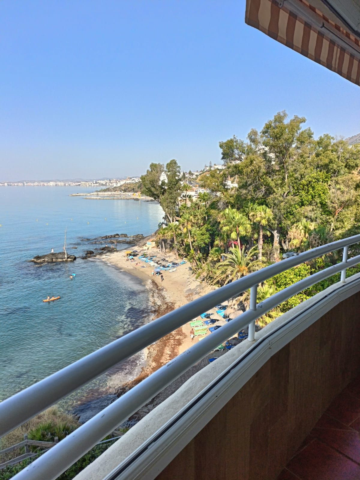 Rare opportunity to purchace a fantastic beach front apartment in Benalmadena Costa . Residencial Costa Quebrada offers stunning sea views and lush gardens, Development located on the cliff by the sea , so despite the fact that apartment is on the ground floor , it’s very much elevated. Apartment has 2 bedrooms 2 bathrooms spacious leaving room white open plan kitchen and a large terrace. Very big underground parking is included in the price. Location cant be better , many restourants within the walking distance . Bus stop just outside international schools 5 min drive. If you are looking for amazing sea view from your terrace dont look any further