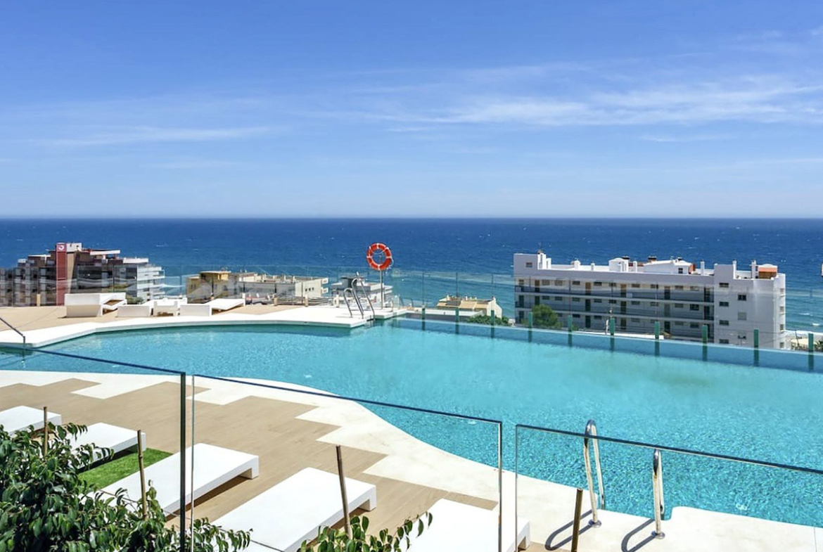 REDUCED (NOW BEST VALUE IN DEVELOPMENT) Stunning newly built 2 bed luxury apartment with breathtaking 180º Mediterranean sea views. Only 100m to beach, shops & restaurants. Set in exclusive El Higueron luxury Sports / Spa community with own beach Club.