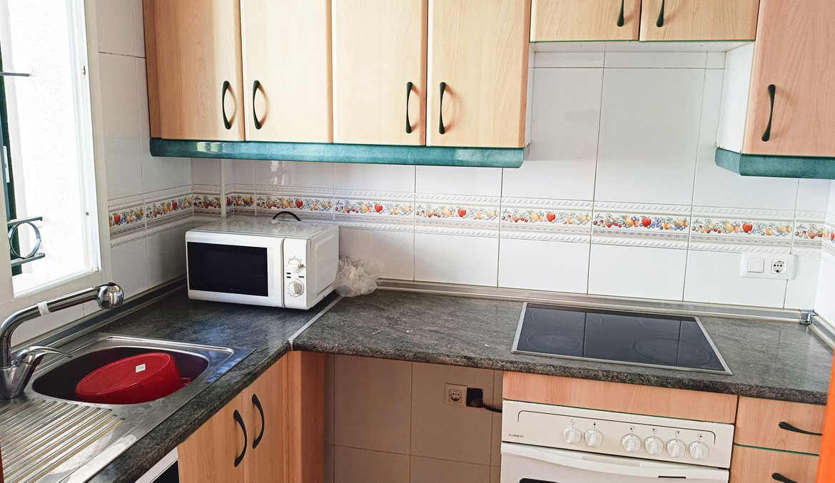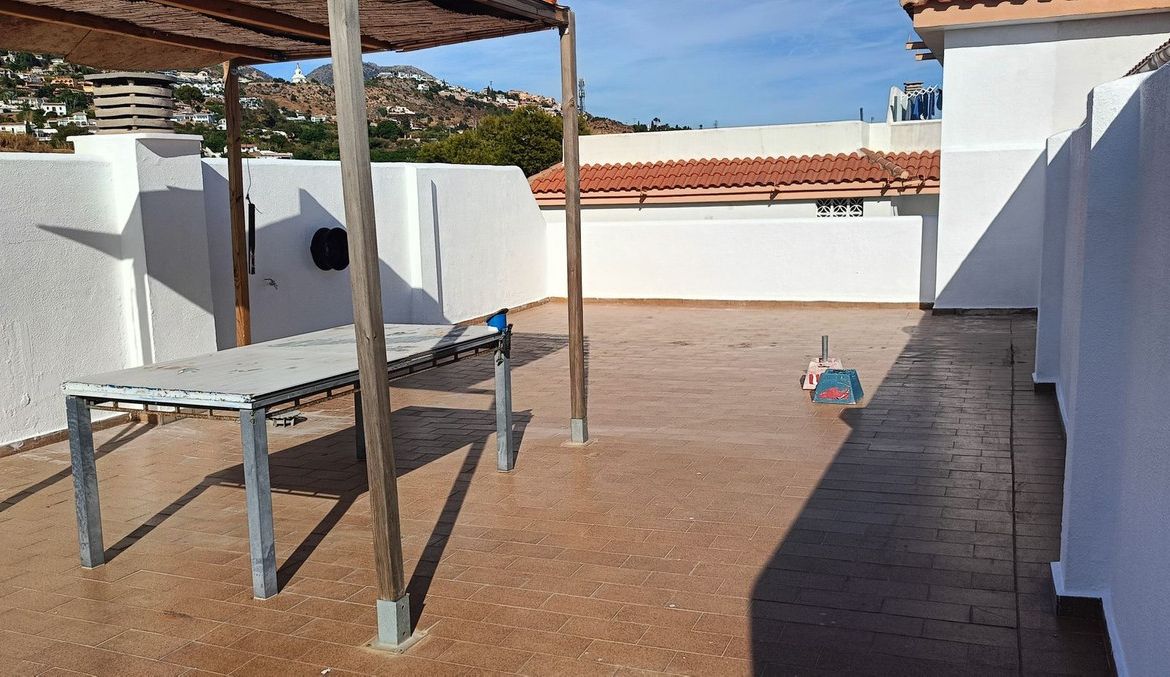 Spectacular penthouse just 800 meters from Carvajal Beach, featuring an upper terrace, two bedrooms, and a bathroom. Gated complex with a swimming pool, extensive communal gardens, and a tennis court. West facing.