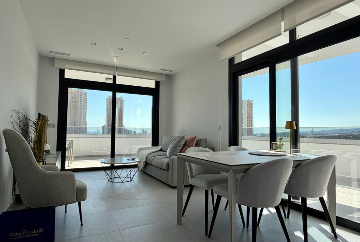A magnificent luxury apartment located in one of the most privileged areas of Benidorm, just 900 metres from the renowned Poniente Beach. Surrounded by iconic skyscrapers such as Intempo, Torre Delfín and Sunset Drive, this exclusive property perfectly combines elegance, comfort and breathtaking panoramic views of the sea and the mountains.