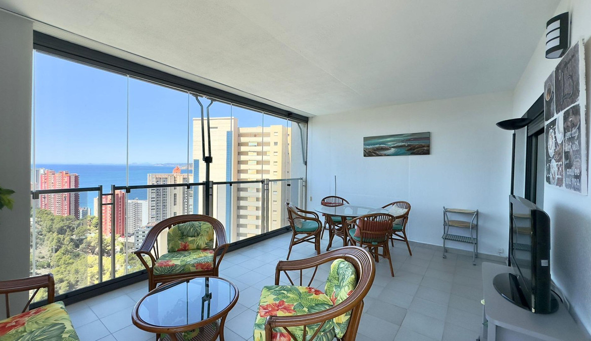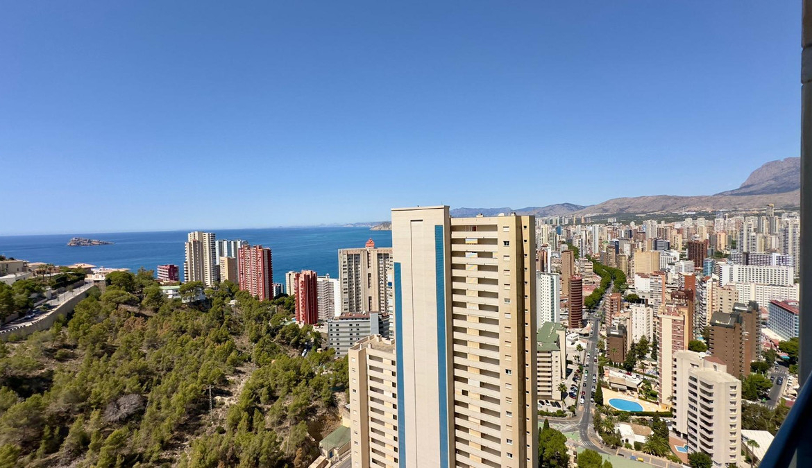 Apartment with sea views with Tourist License in BenidormThis magnificent apartment is located in one of the most emblematic skyscrapers in Benidorm, the “Mirador del Mediterráneo” building. Its privileged location offers unbeatable access to all the amenities and tourist attractions that the famous Benidorm coast has to offer.The apartment has two bedrooms, both spacious and well lit. The rooms are designed to offer maximum comfort, with built-in wardrobes and large windows that allow you to enjoy panoramic views.A spacious and cozy living room, ideal for moments of relaxation and entertainment. This space is tastefully decorated and offers a warm and comfortable atmosphere. The kitchen is independent and is fully equipped with modern appliances. Its functional design makes daily tasks easier and allows you to prepare delicious meals with ease.A complete bathroom, elegantly decorated, that includes all the necessary comforts for everyday life.A large terrace with spectacular views of the Mediterranean Sea. This space is perfect for enjoying outdoor breakfasts, sunset dinners or simply relaxing while taking in the seascape.The convenience of having a parking space in the same building is included in the price, offering security and ease of access.Urbanization:The urbanization offers complete infrastructure and is immersed in the vibrant tourist life of Benidorm. Here you will find:Well-maintained recreational areas including swimming pools, gardens and rest areas.24/7 security system to guarantee the peace of mind of all residents.Within walking distance of supermarkets, restaurants, shops and leisure centers.Around:The location of the apartment is ideal for lovers of nature and active tourism. The area is surrounded by hiking trails and hidden beaches that invite exploration. You can enjoy walks along the coast, discover hidden coves and practice water sports.This apartment not only offers an excellent investment opportunity due to its tourist license, but also promises an exceptional quality of life in one of the most sought-after destinations on the Costa Blanca. Don't miss the opportunity to live or invest in this Mediterranean paradise.