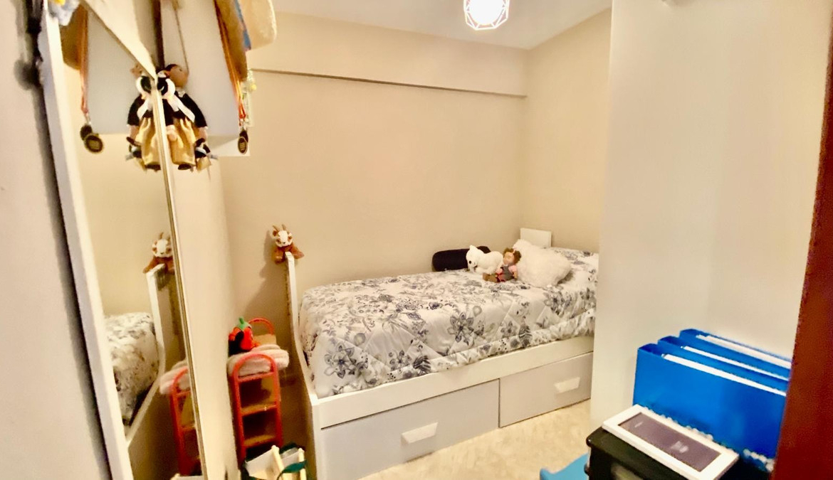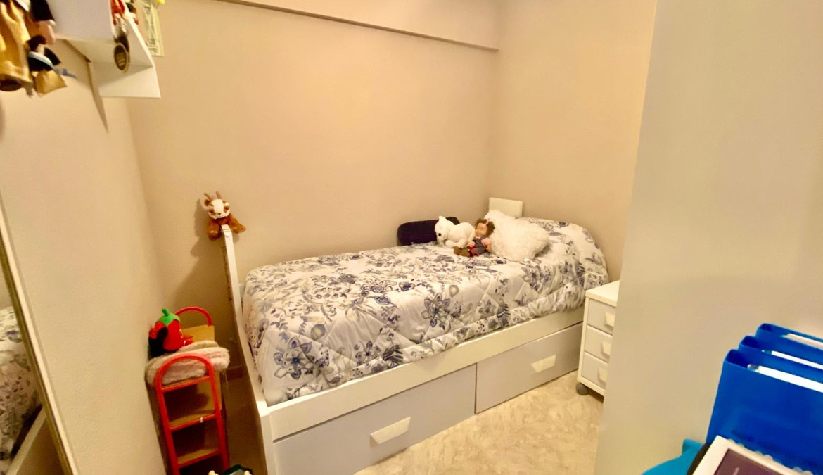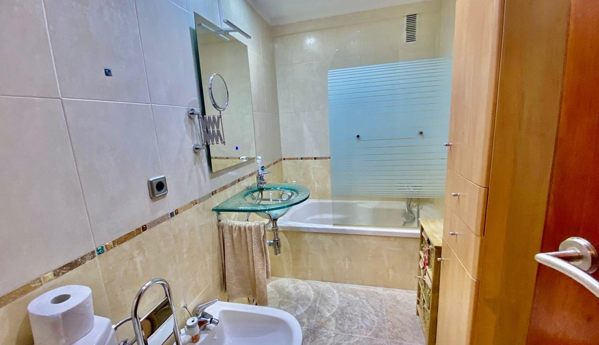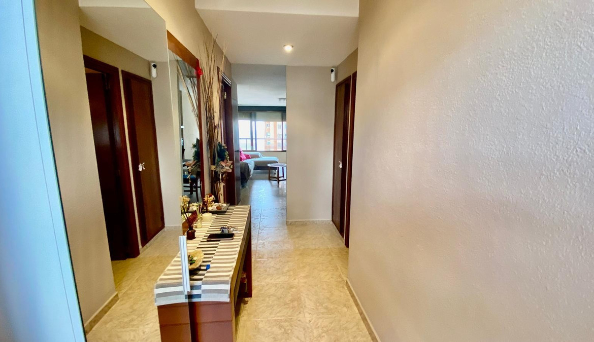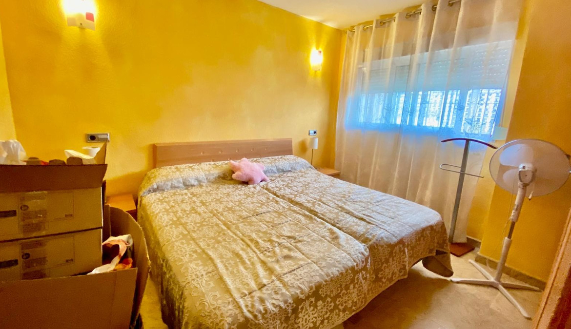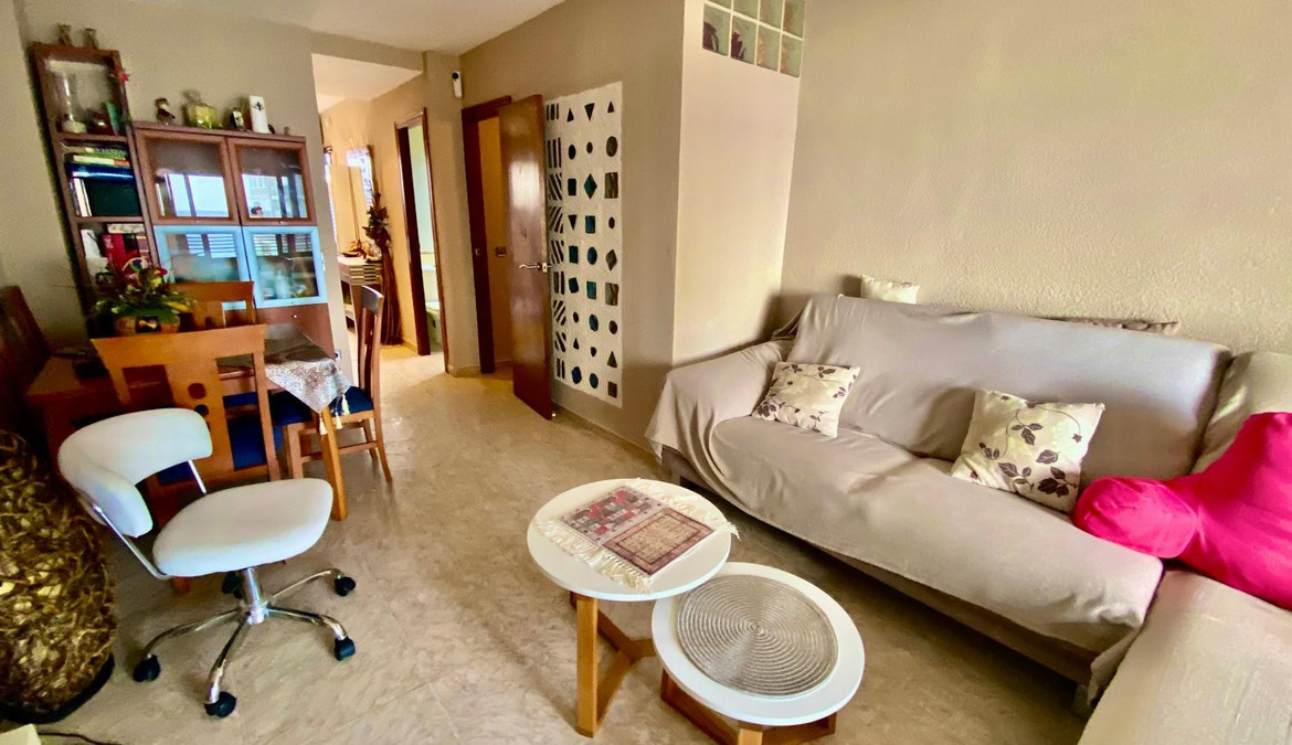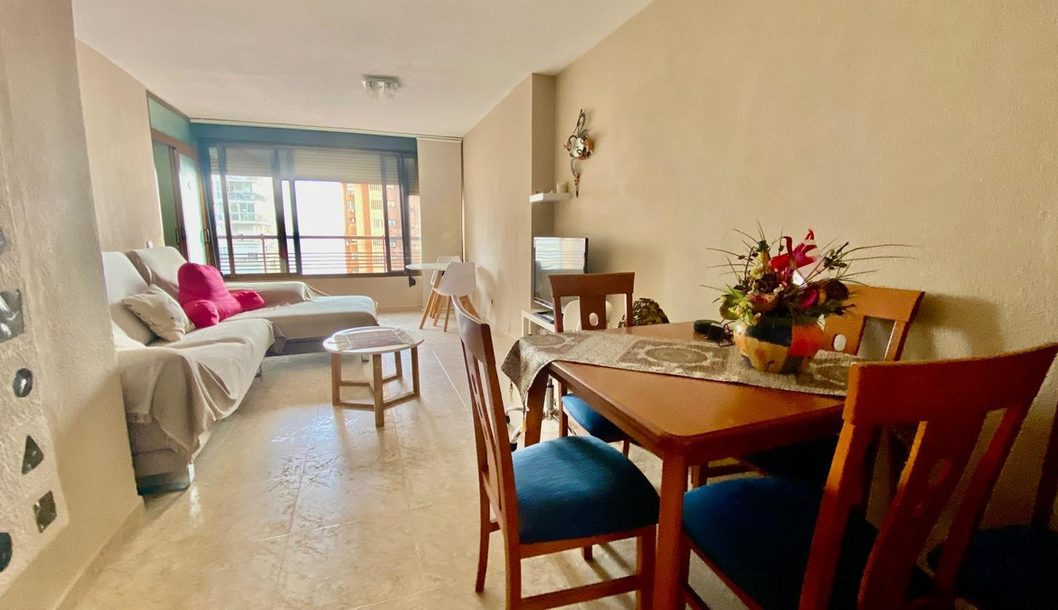 The property features 2 bedrooms with fitted wardrobes, 1 full bathroom with bathtub, a separate kitchen with utility room, and a bright living-dining room with access to a covered terrace, perfect to enjoy the beautiful sea views.