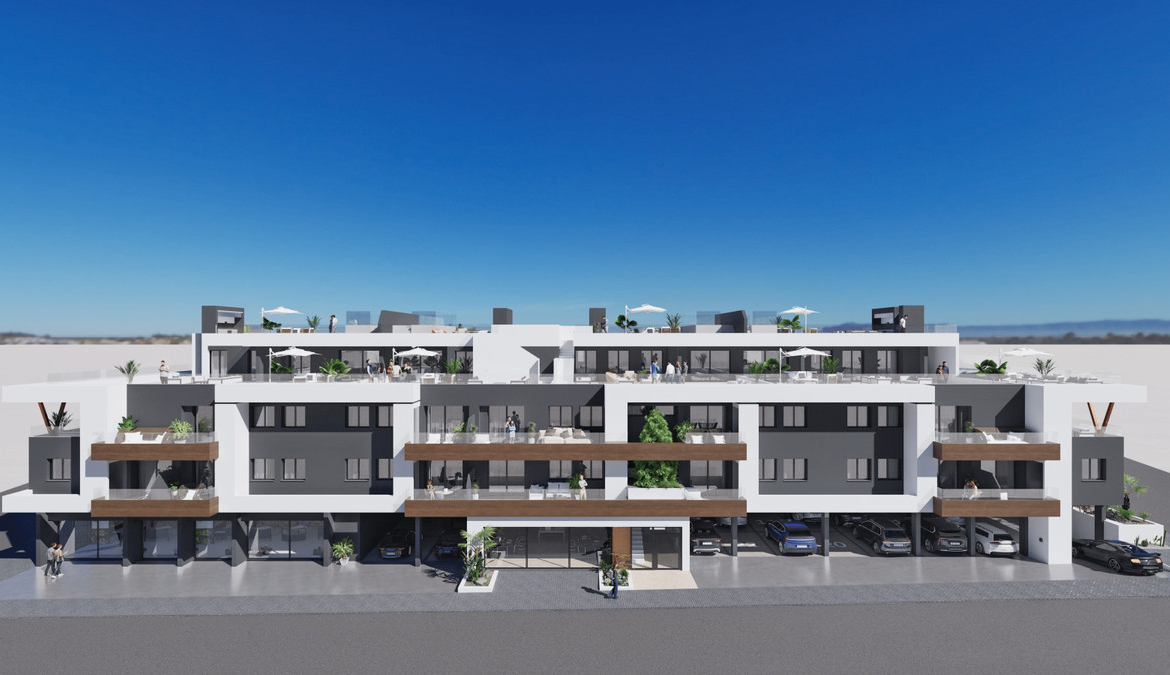 Our new residential complex is situated in the center of the charming village of Benijófar, in the heart of the Vega Baja del Segura. The proximity to renowned golf courses, natural parks, and historical and cultural landmarks make Benijófar a highly attractive destination for those seeking an exceptional quality of life. A truly special place to live and enjoy Mediterranean life.