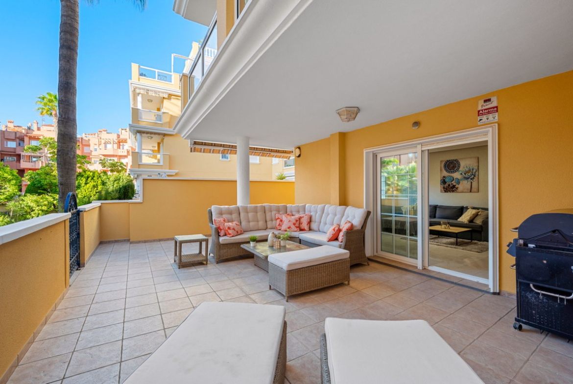 Located within the desirable La Caleta complex, this southwest-facing home is just a leisurely 10-minute walk from the beach and boasts an impressive 30 m² private terrace — the perfect space for sun-soaked mornings, alfresco dining, or relaxed evenings with friends.