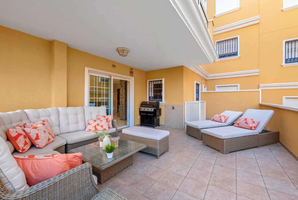 Discover this delightful two-bedroom, two-bathroom apartment in the highly sought-after coastal enclave of Cabo Roig, where Mediterranean living meets comfort and convenience.
